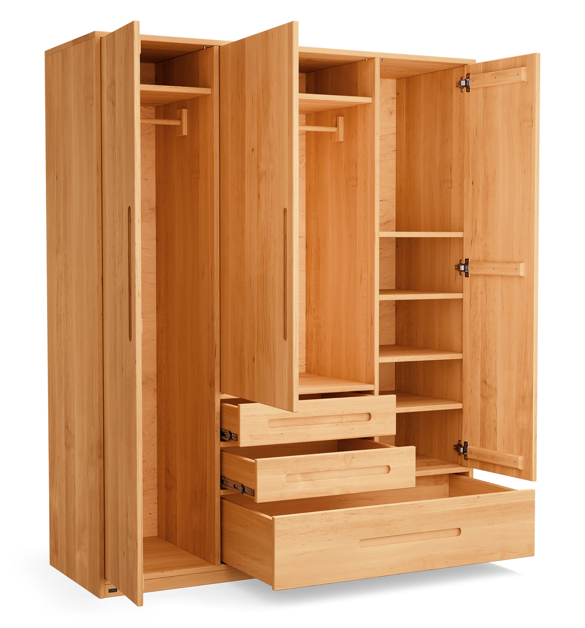 Unser 3-türiger Lina Kleiderschrank wird aus ökologischem Massivholz gefertigt und sorgt dank ausreichendem Platz und einer flexiblen Innenaufteilung schnell für Ordnung und Übersichtlichkeit. Der Kleiderschrank fällt durch sein modernes geometrisches Design und die elegant gefrästen Griffmulden auf. Als Teil unserer zeitlosen Lina Möbelserie fügt sich der Schrank harmonisch in jedes Kinder- und Jugendzimmer ein.
