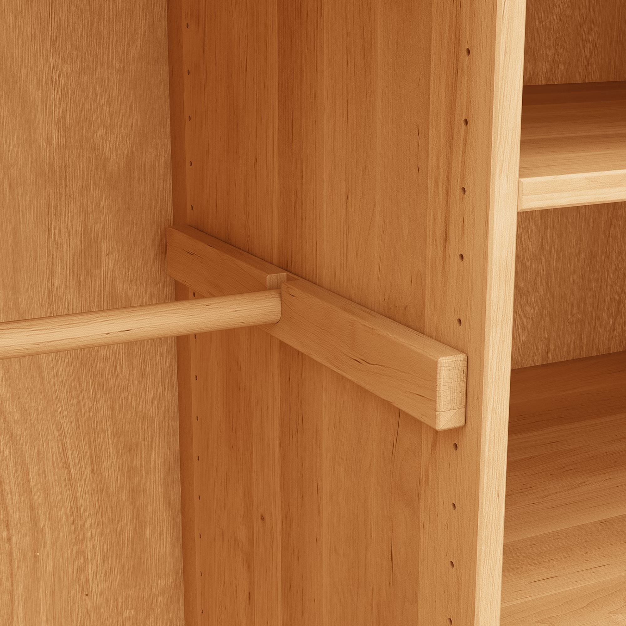 Eine flexibel positionierbare Kleiderstange ergänzt den Schrank sinnvoll und bietet Platz für Jacken, Hemden oder Kleider. So wächst der Stauraum mit den Bedürfnissen Ihres Kindes mit und passt sich immer wieder neu an – vom Babyalter bis weit darüber hinaus.