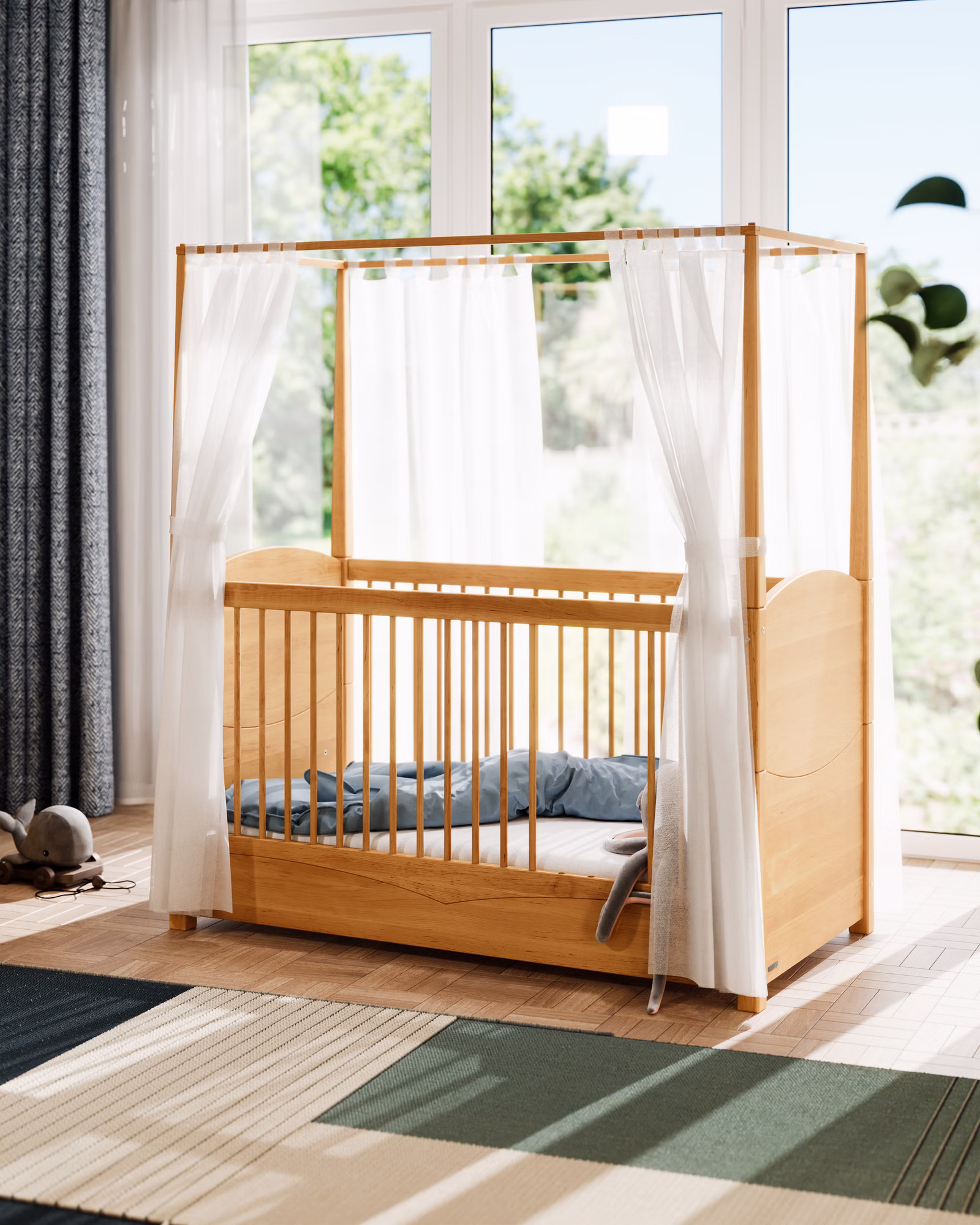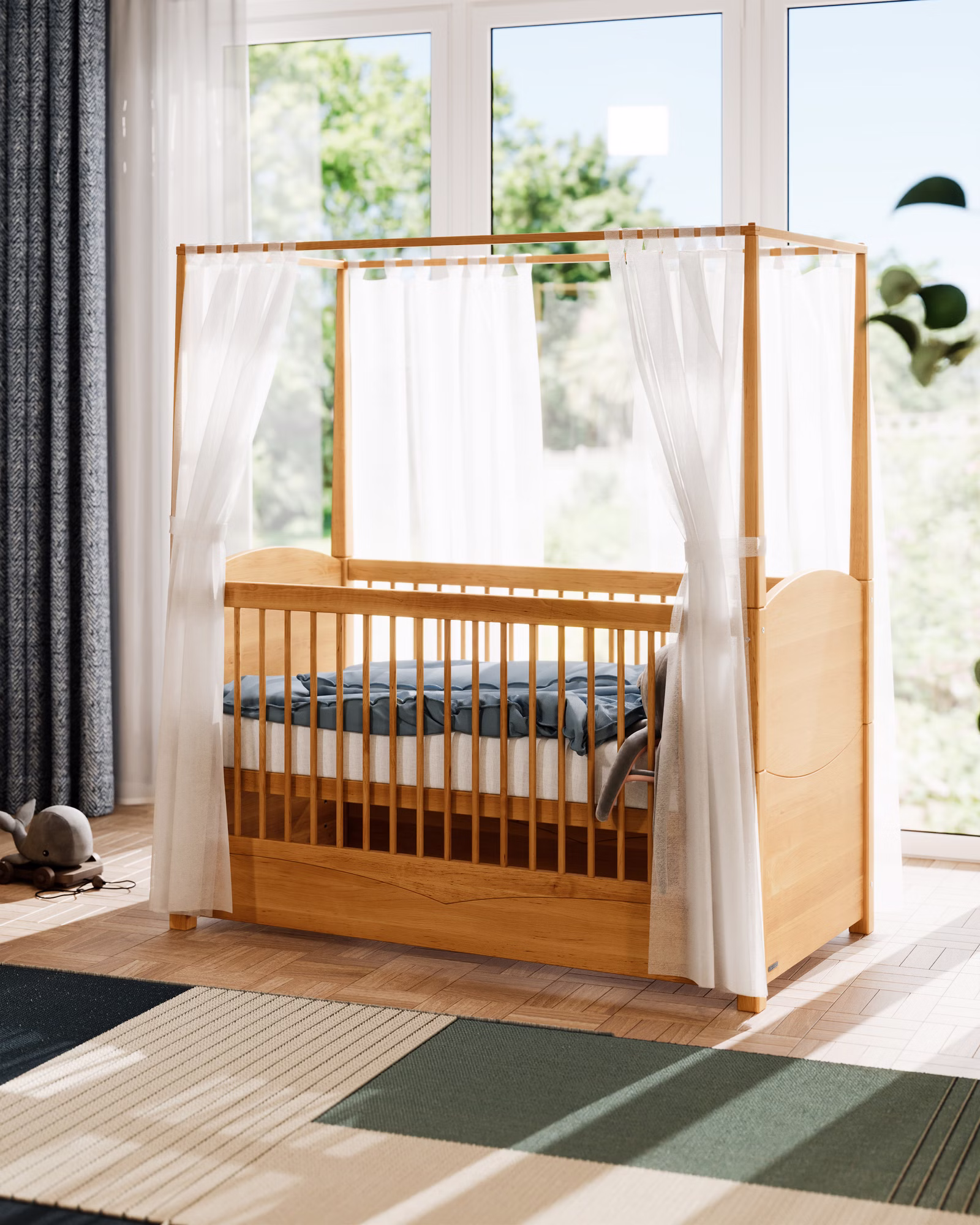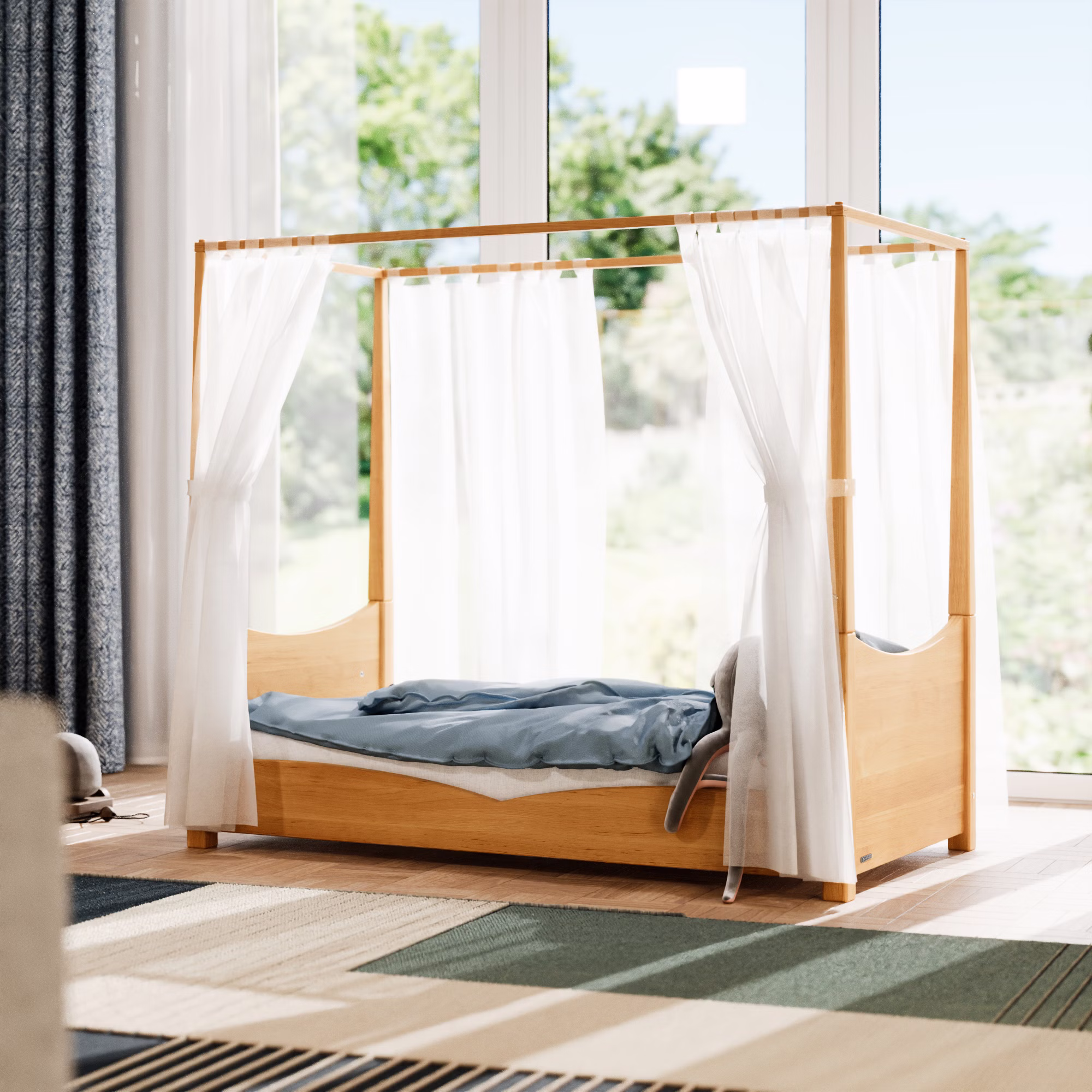 Mit dem Himmelbett-Aufsatz verwandelt sich das Luca Kinderbett in ein traumhaftes Himmelbett.