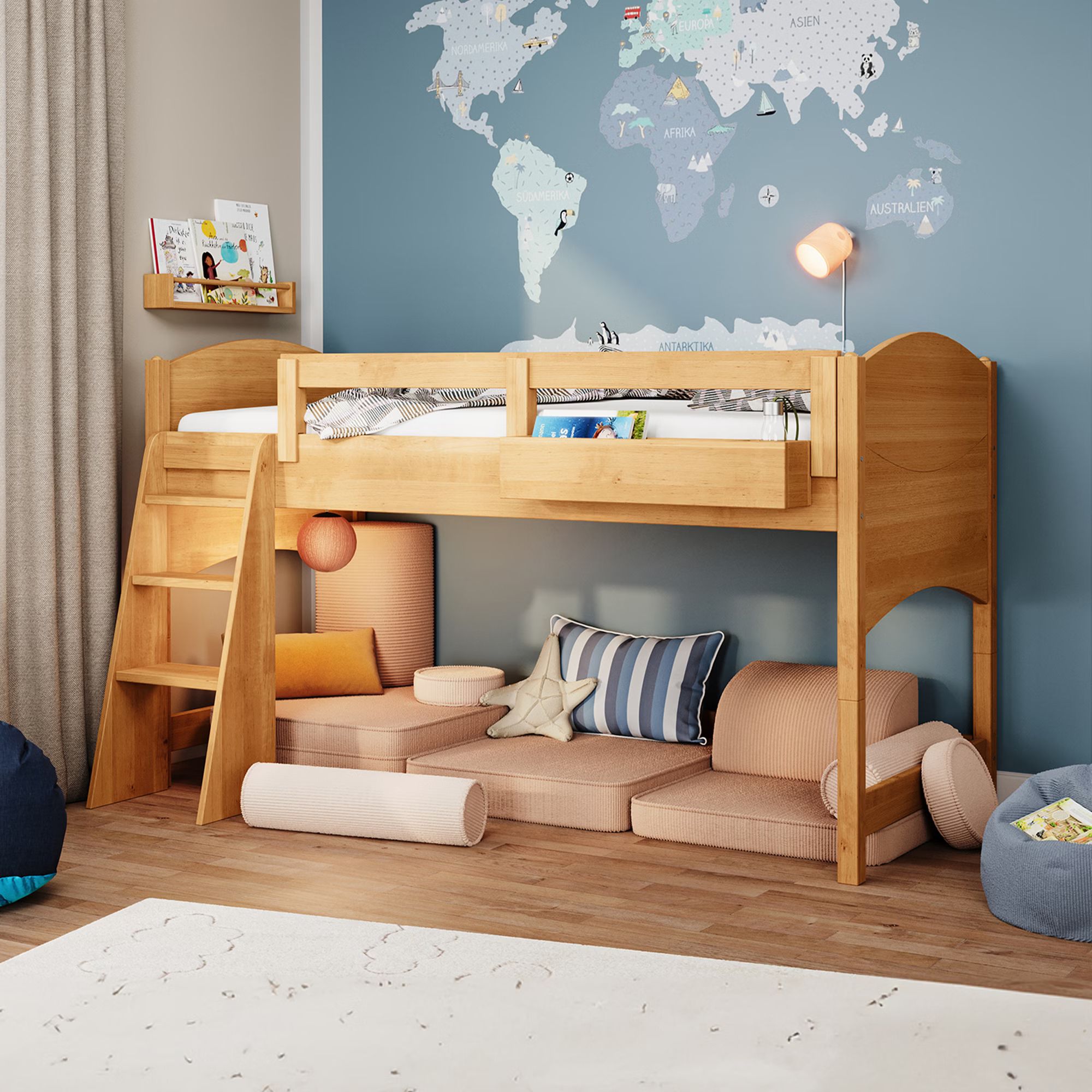 Die Ergänzung für das Bio-Kinder- und Jugendbett Noah: Leiter fürs Noah Kinderbett, passend zum Unterbauelement für ein Hochbett.