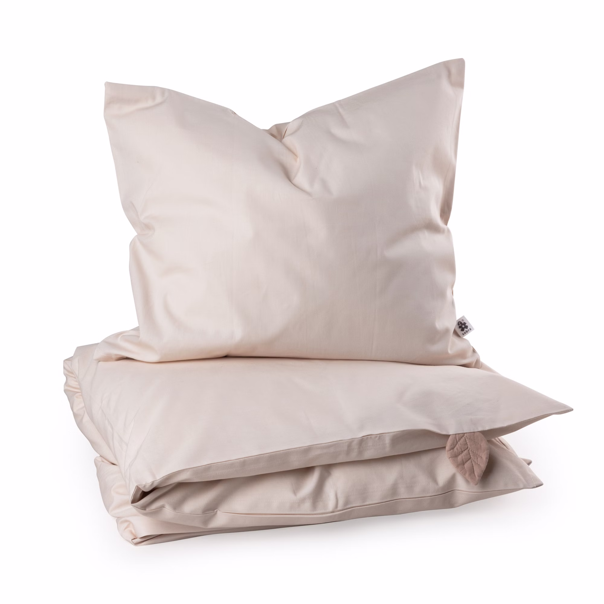 Als zusätzliches Detail ist auf dem Bettbezug ein kleines Blatt aufgenäht, das als Fühltuch für kleine, müde Kinderfinger dient.