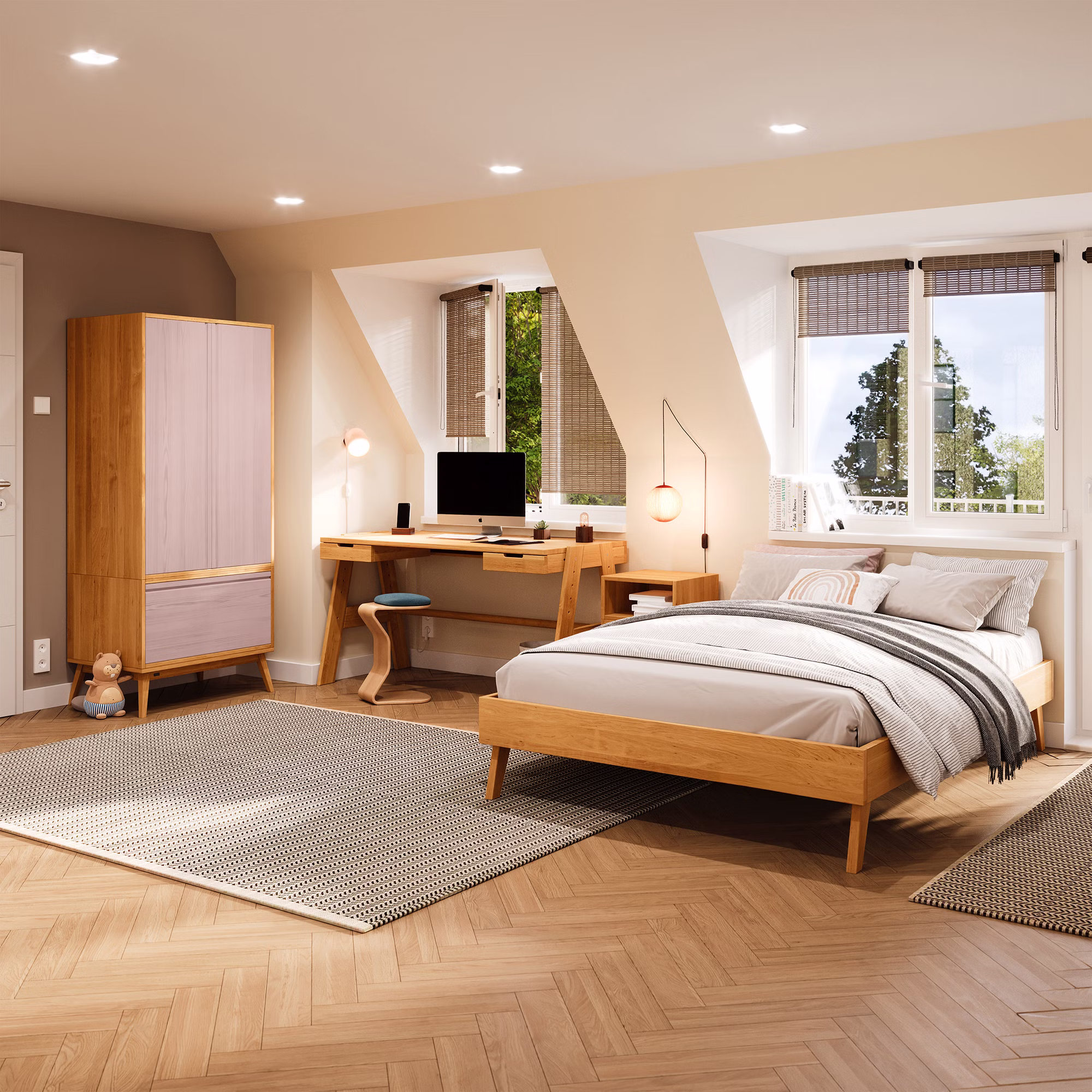 Das Massivholz stammt aus zertifizierter Forstwirtschaft. Gefertigt aus Bio-Erlenholz (natur) und Bio-Kiefernholz (weiß und bunt lasiert). Die Beschaffenheit jedes Möbelstücks wird nur bei BioKinder durch bioola® nature Öl bzw. bioola® colour Lasur aus natürlichen Erd- und Mineralpigmenten und pflanzlichem Carnaubawachs erhalten und speichel- sowie schweißecht natürlich veredelt.