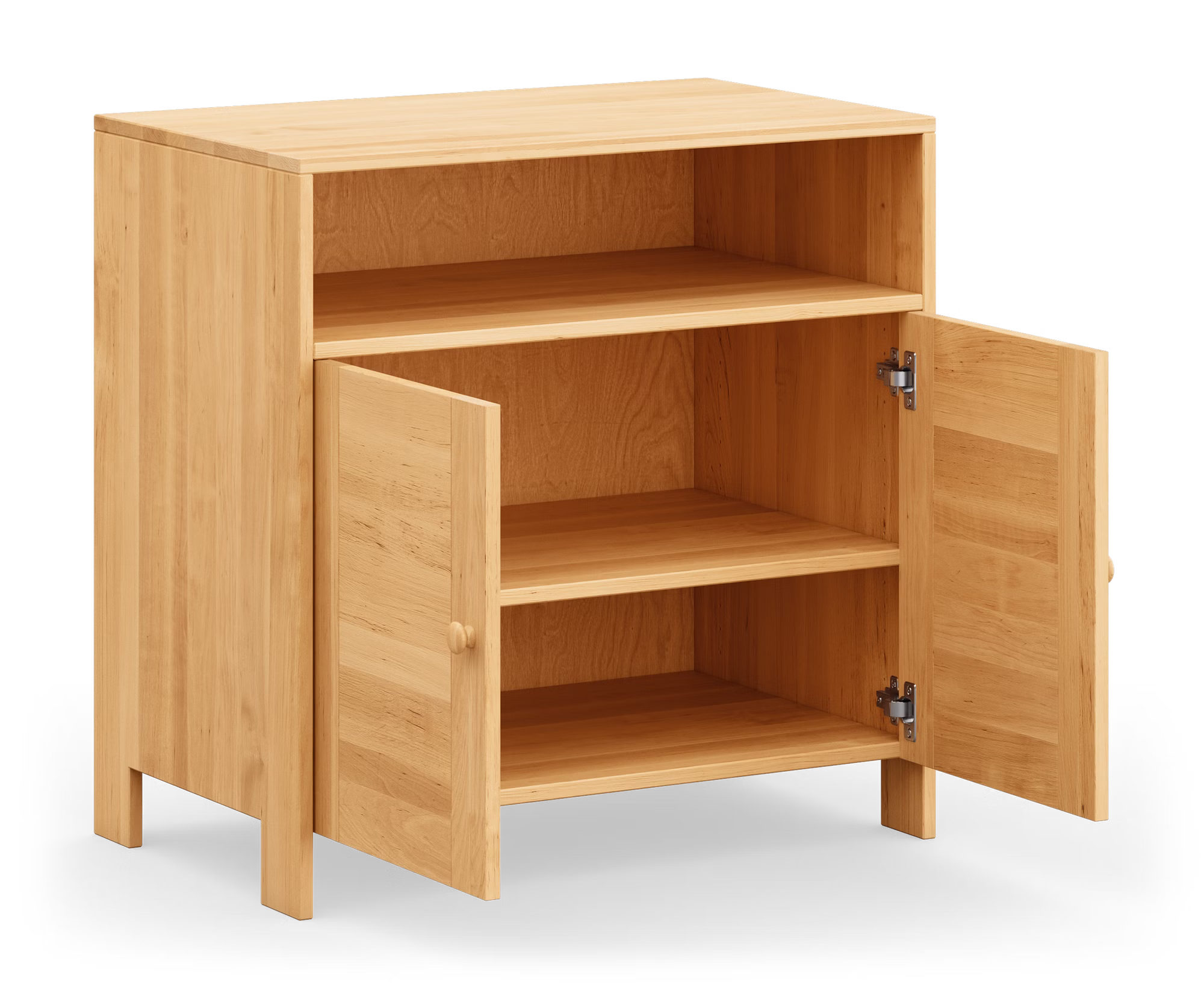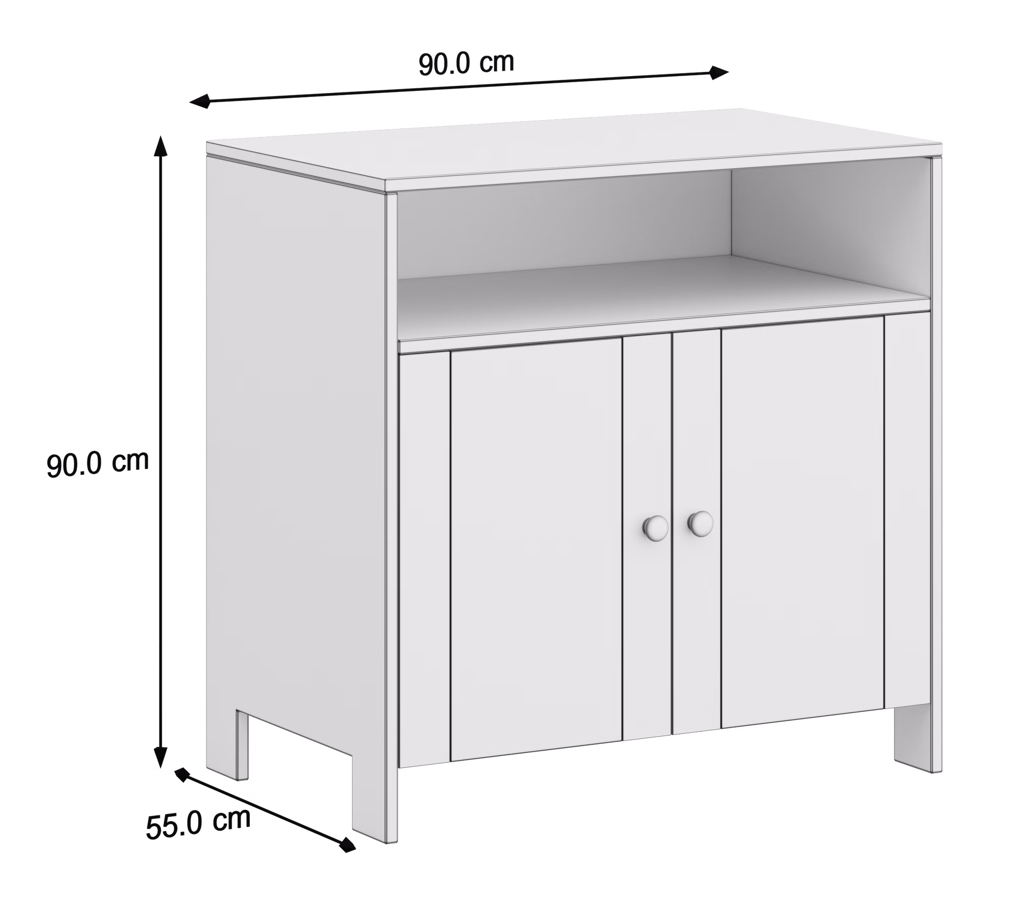 - Kommode Niklas: 1 großes offenes Fach, 1 Einlegeboden im Innenfach hinter den 2 Türen mit schönen Griffen. Zusätzliche Regalböden erhältlich. (Erweiterbar mit kleinen BioKinder Ordnungskistchen Artikel Nr. 22627, passend für das offene Fach)