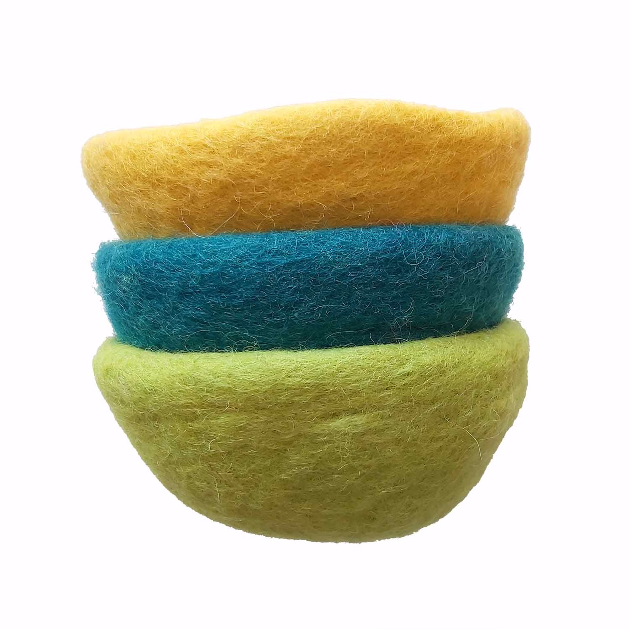Die Filzschalen werden in liebevoller Handarbeit aus reiner Wolle in Süddeutschland hergestellt – so ist jede Schale ein Unikat.