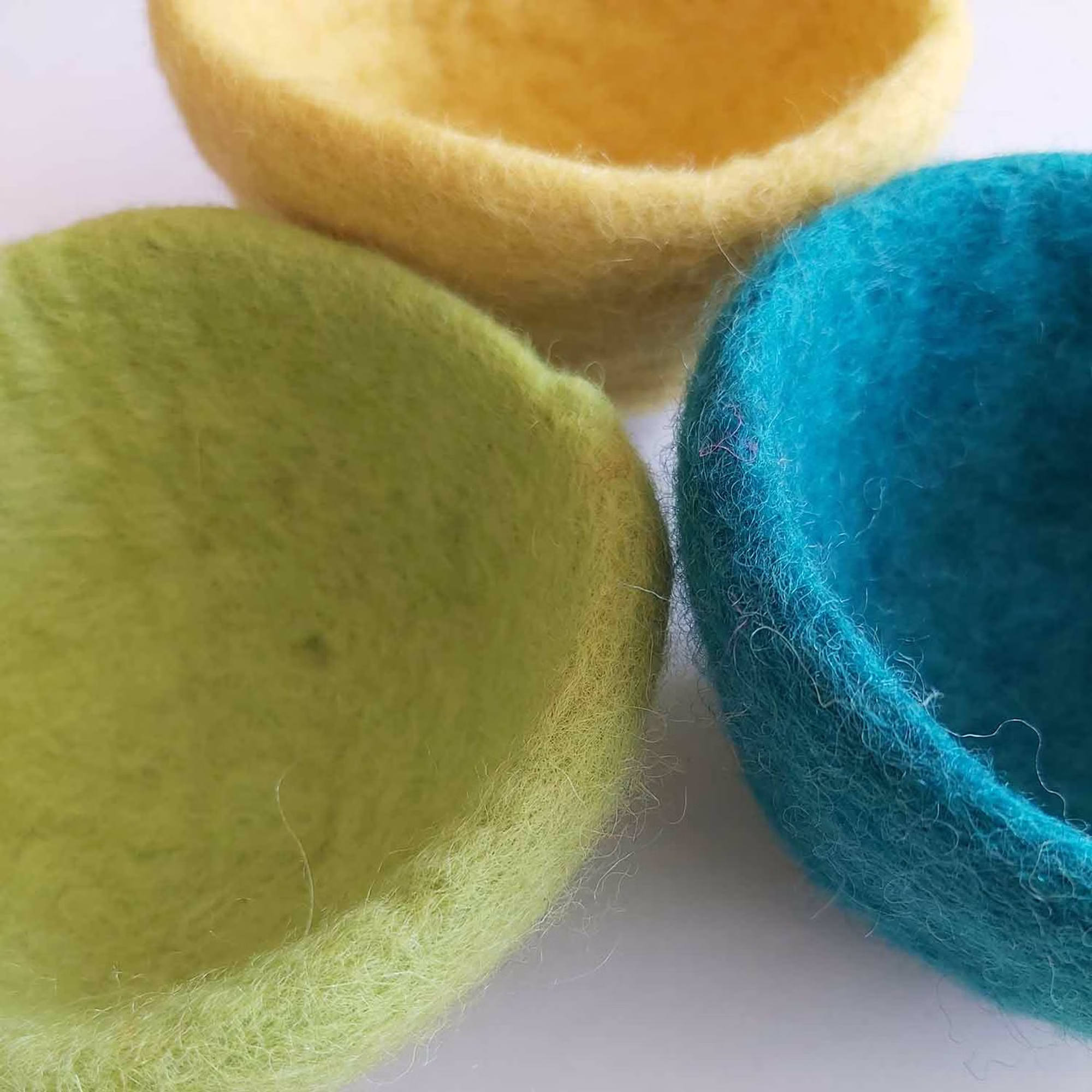 Mit diesen wunderschönen Schalen aus Wolle, können schon kleine Kinder die Farben erlernen.