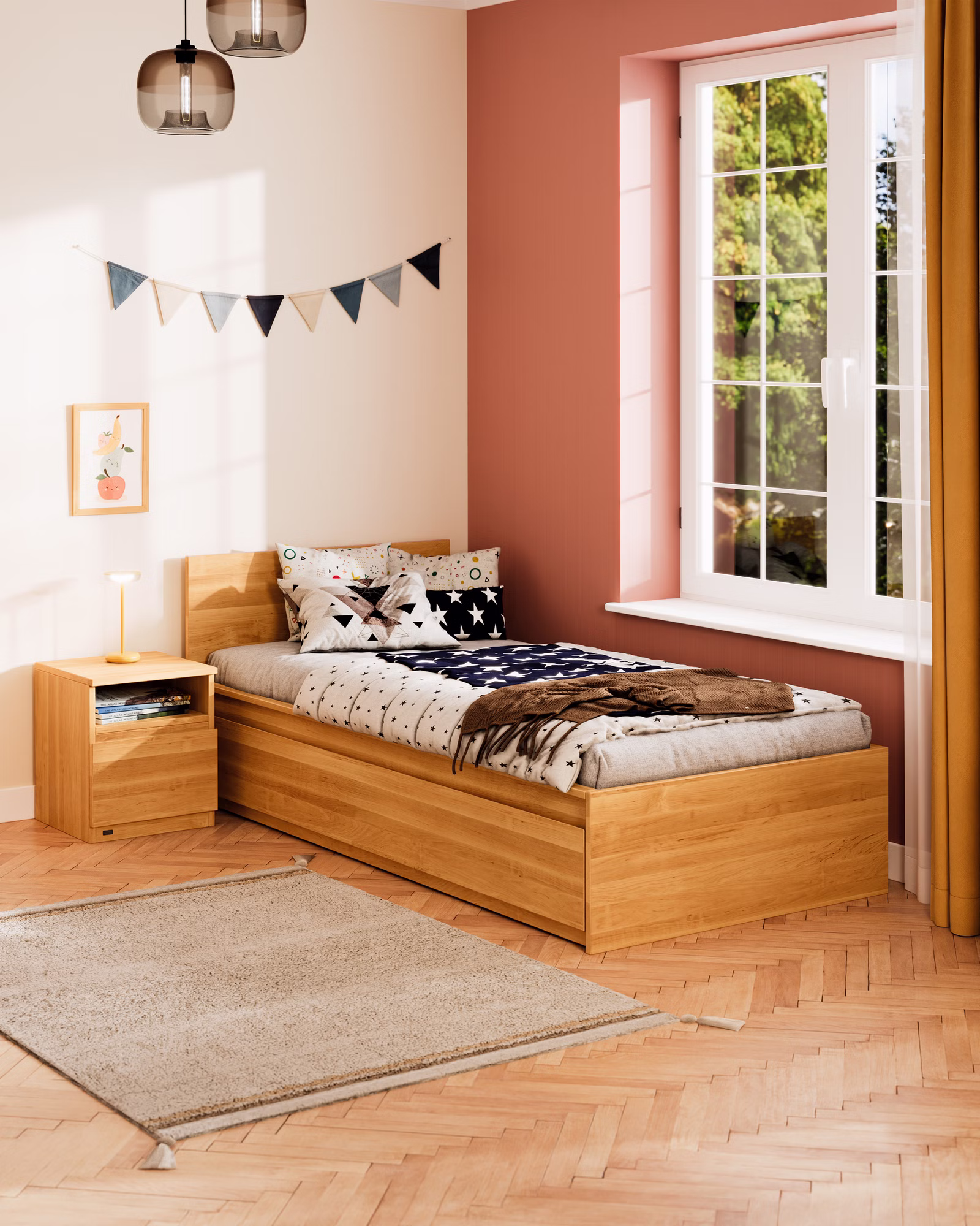 Das Massivholz mit durchgehenden Lamellen stammt aus zertifizierter Forstwirtschaft. Gefertigt aus Bio-Erlenholz bzw. Bio-Kiefernholz. Die Beschaffenheit jedes Möbelstücks wird nur bei BioKinder durch bioola® nature Öl bzw. bioola® colour Lasur aus natürlichen Erd- und Mineralpigmenten und pflanzlichem Carnaubawachs erhalten und speichel- sowie schweißecht natürlich veredelt. Für gesunde Kindermöbel von Anfang an.