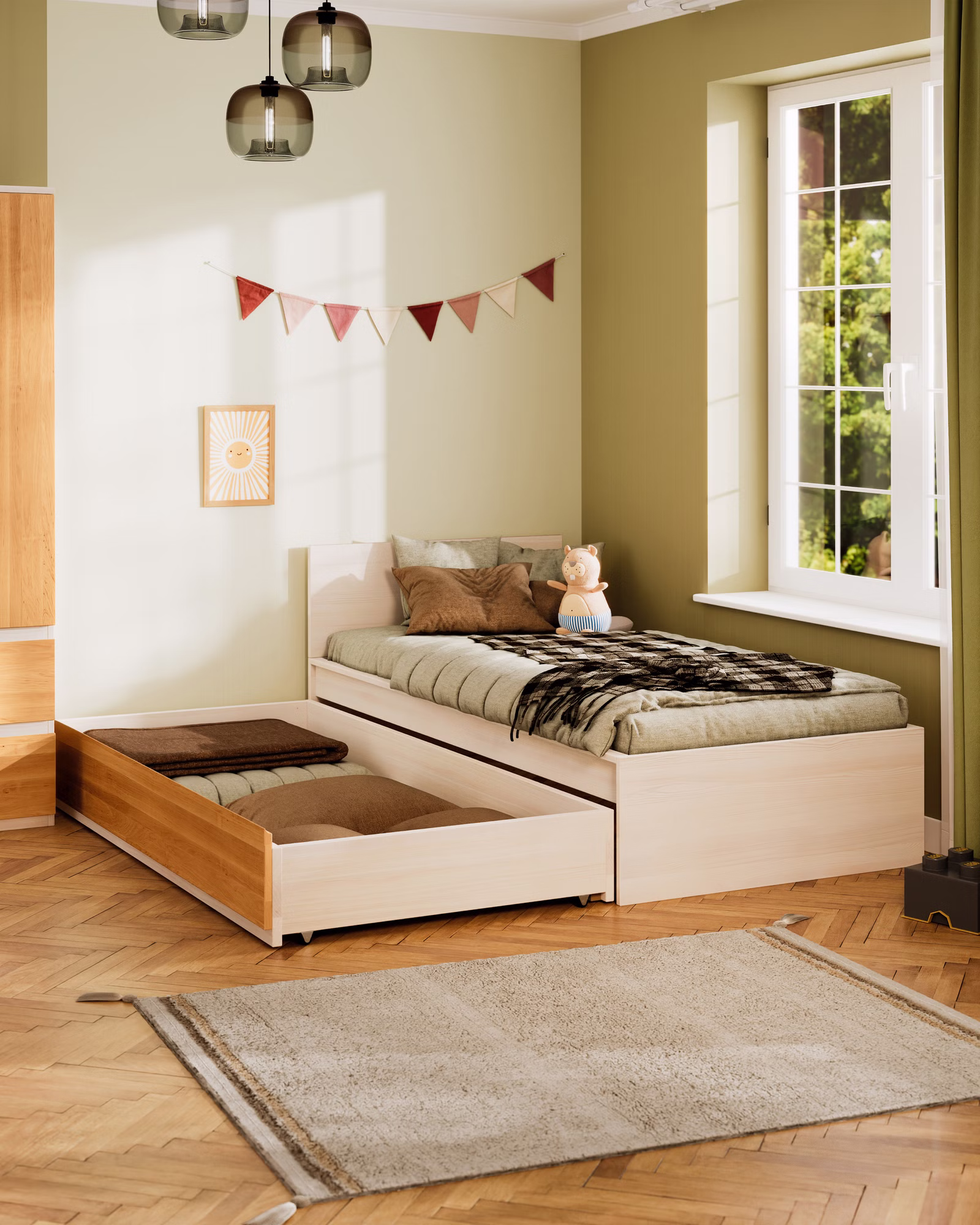 Der Finn Bettkasten für unser Finn Kinder- und Jugendbett 90x200 cm (Artikel 29909) bietet praktischen Stauraum oder einen ausziehbaren Schlafplatz für Übernachtungsgäste. Gefertigt aus hochwertigem Bio-Massivholz fügt er sich nahtlos in das zeitlose Design unserer Finn Möbelserie ein. Der Bettkasten kann wahlweise mit einem Boden als Stauraum oder mit einem Lattenrost als ausziehbare Gästebett-Erweiterung genutzt werden. Die natürliche bioola® Oberflächenveredelung sorgt für eine warme Haptik und unterstreicht den zeitlosen, klaren Stil der Finn Möbelserie.