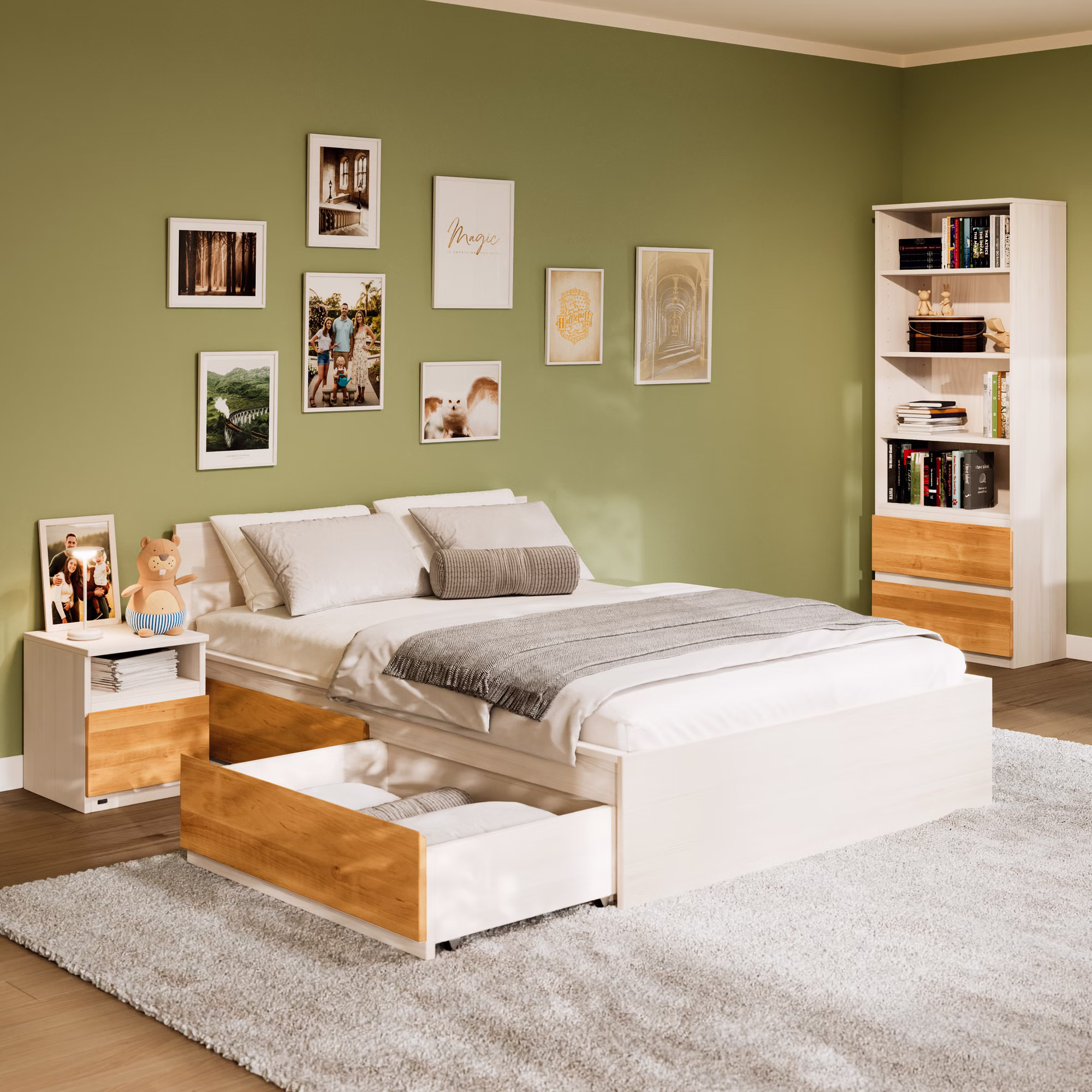 Finn ist bewusst schlicht gestaltet und wirkt dadurch besonders zeitlos. Genau diese Zurückhaltung macht das Bett zu einem langlebigen Begleiter, der sich flexibel an unterschiedliche Lebensphasen und Einrichtungsstile anpasst – vom liebevoll eingerichteten Kinderzimmer bis hin zum modernen Jugendzimmer.