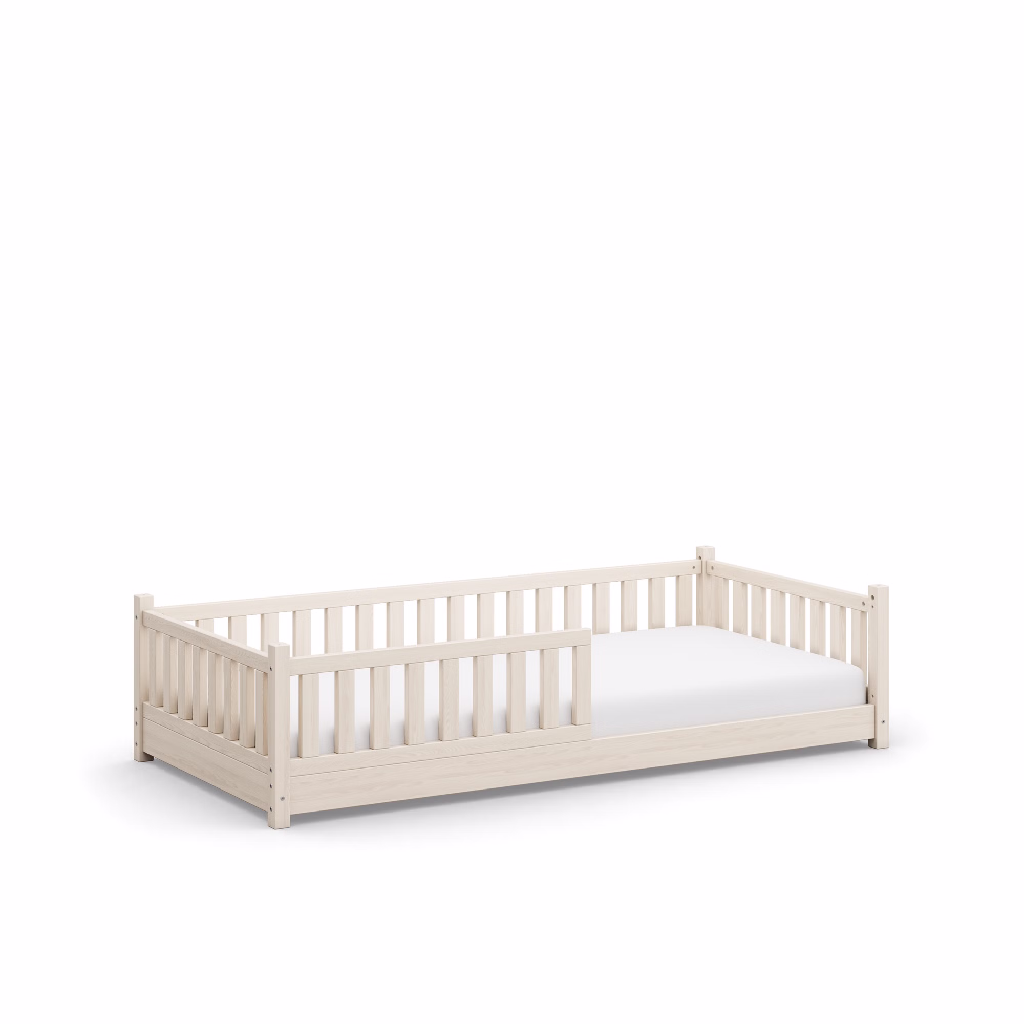 Zusätzlich gewährleistet sie eine sanfte Unterlüftung der Matratze, um ein angenehmes Schlafklima zu fördern. Perfekt für Kleinkinder, die sich noch schwer tun, in und aus einem höheren Bett zu steigen, oder für Eltern, die eine bodennahe Schlaflösung bevorzugen.