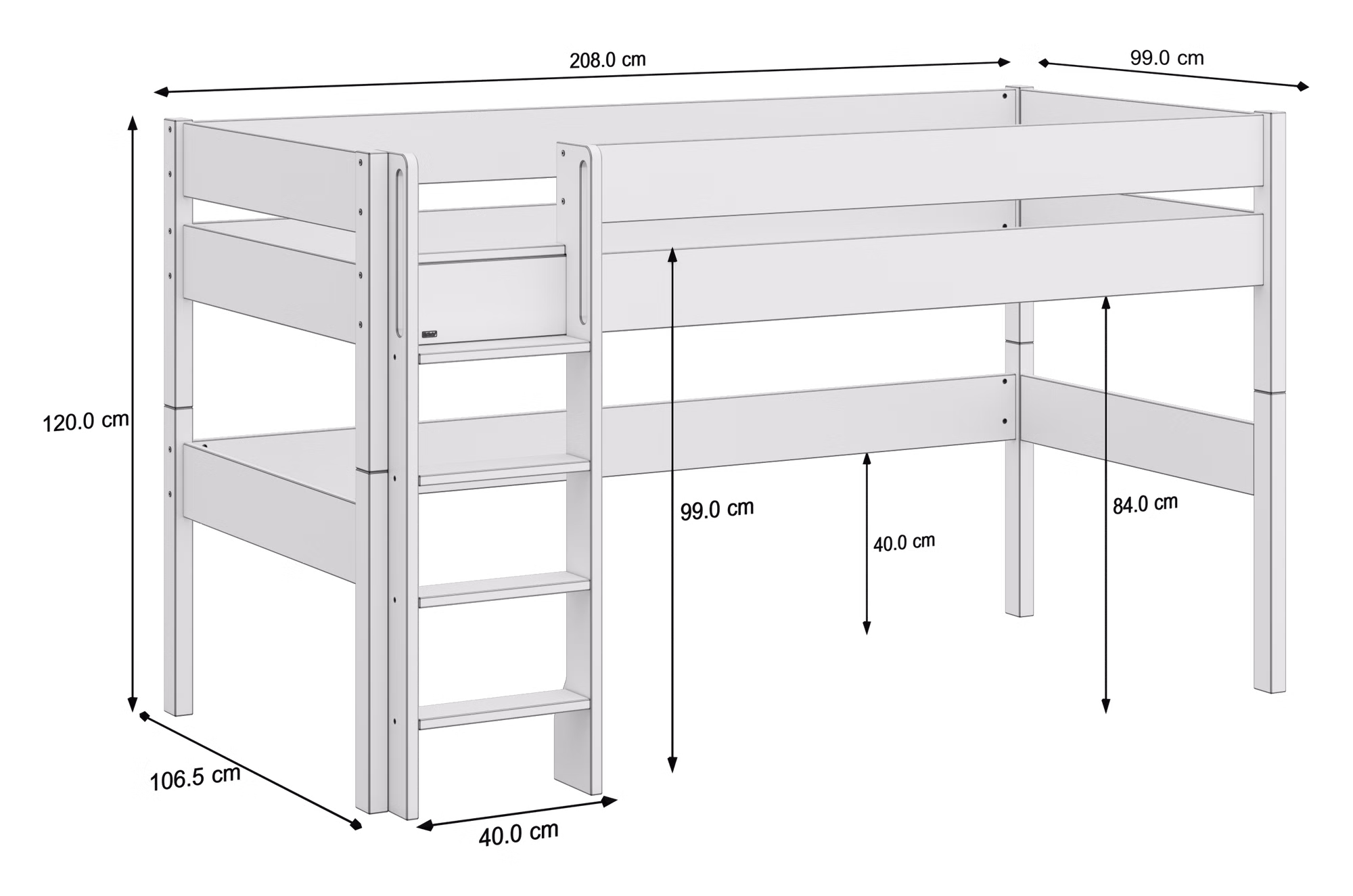 Diese Variante bietet die ideale Höhe für Eltern und Kinder. Das Bett lässt sich bequem beziehen, während Ihr Kind dennoch das Gefühl eines „echten Hochbetts“ genießen kann. Der Platz darunter verwandelt sich im Handumdrehen in eine gemütliche Kuschelhöhle, Leseecke oder Spielwelt – ein Lieblingsort für ruhige Stunden und kreative Abenteuer.