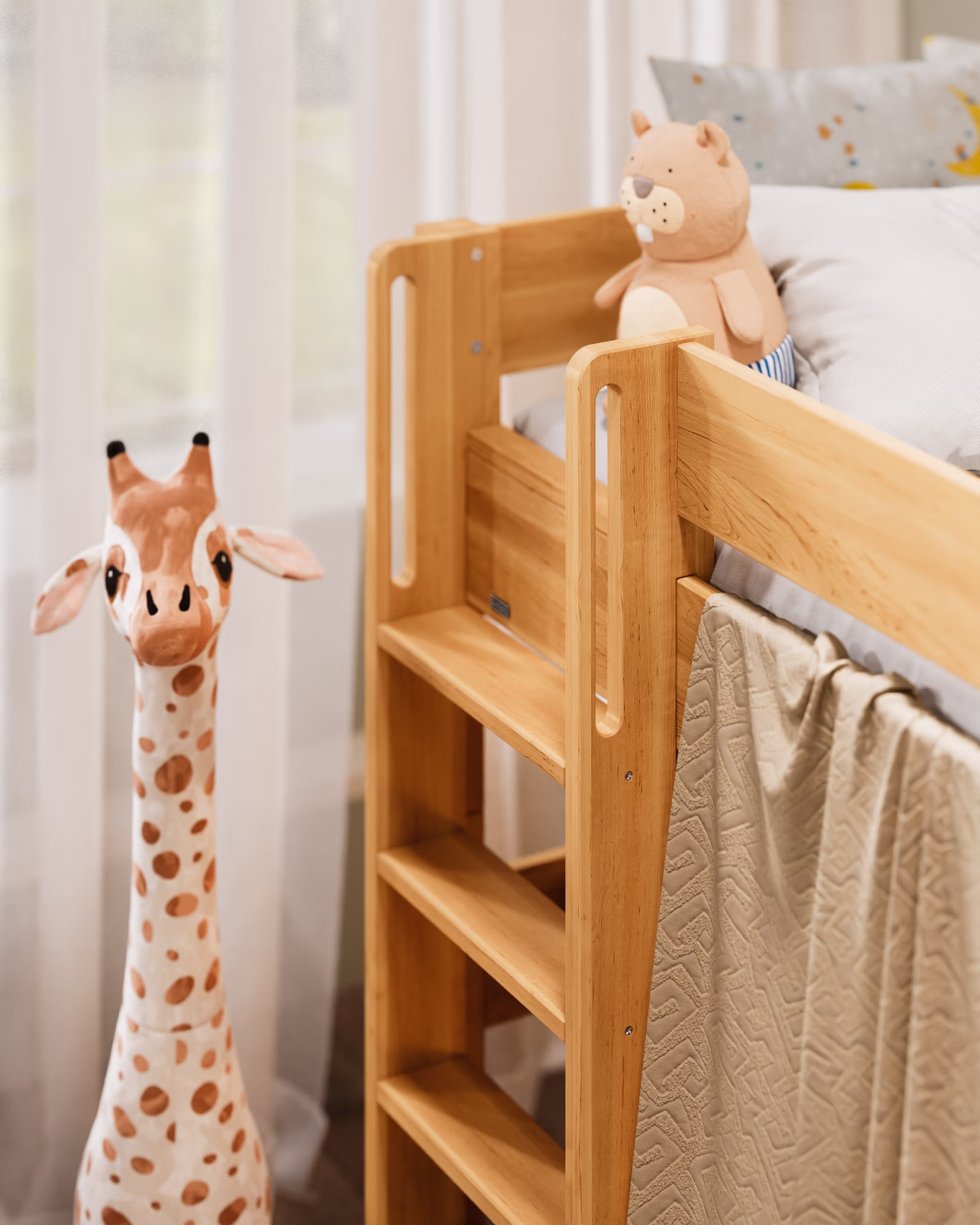 Mit seiner großzügigen Höhe wird Theo zum flexiblen Raumwunder: als Hochbett mit viel Platz darunter oder als Etagenbett für Geschwister und Übernachtungsgäste. Der Umbau ist kinderleicht – so lässt sich Theo jederzeit an neue Lebensphasen anpassen.