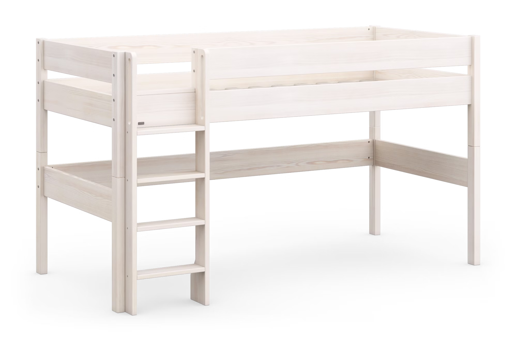 Diese Variante bietet die ideale Höhe für Eltern und Kinder. Das Bett lässt sich bequem beziehen, während Ihr Kind dennoch das Gefühl eines „echten Hochbetts“ genießen kann. Der Platz darunter verwandelt sich im Handumdrehen in eine gemütliche Kuschelhöhle, Leseecke oder Spielwelt – ein Lieblingsort für ruhige Stunden und kreative Abenteuer.