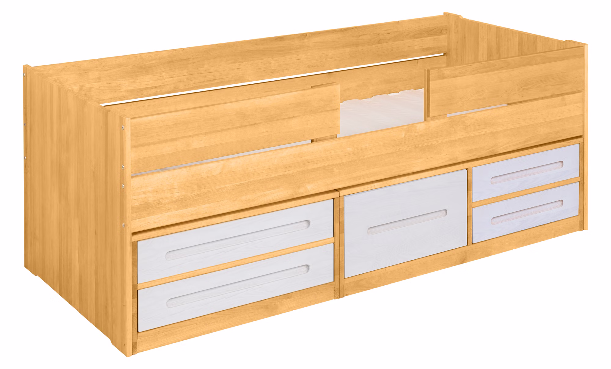 Unser beliebtes Lina Kojenbett wird aus Bio-Massivholz gefertigt und sorgt dank der geräumigen Bettkommoden für mehr Ordnung im Kinder- und Jugendzimmer!