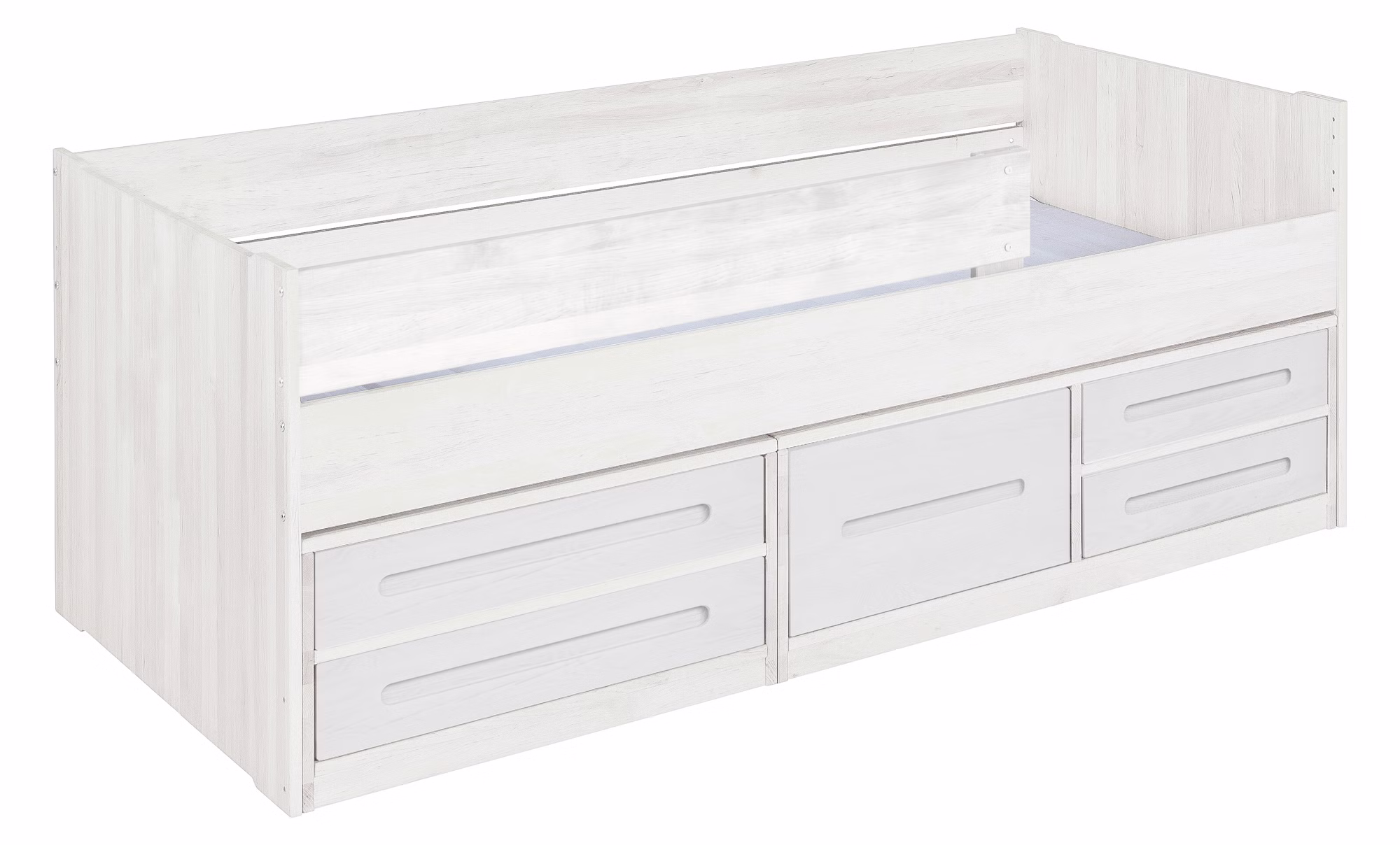 Unser beliebtes Lina Kojenbett wird aus Bio-Massivholz gefertigt und sorgt dank der geräumigen Bettkommoden für mehr Ordnung im Kinder- und Jugendzimmer!