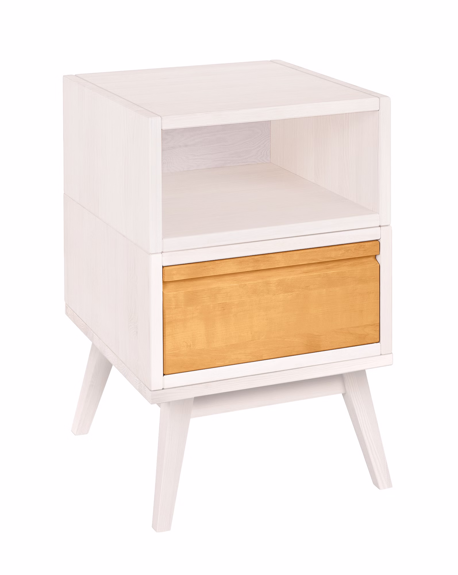 Laura Retro Nachttisch mit Schublade und offen, Höhe 62 cm