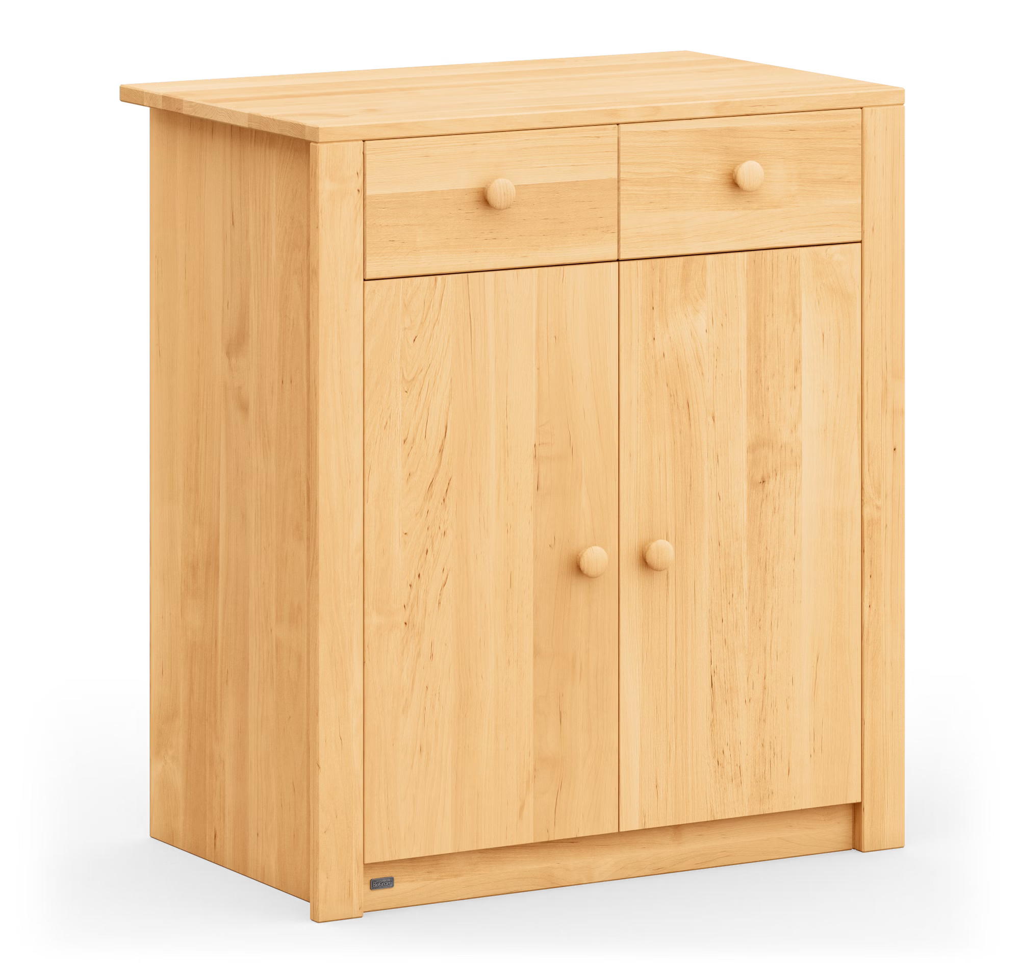 Für alle wichtigen Dinge im Leben: Die 2-türige Kommode aus Bio-Massivholz verstaut in zwei Schubladen und zwei geräumigen Fächern Kleidung, Spielzeug und andere Lieblingssachen.