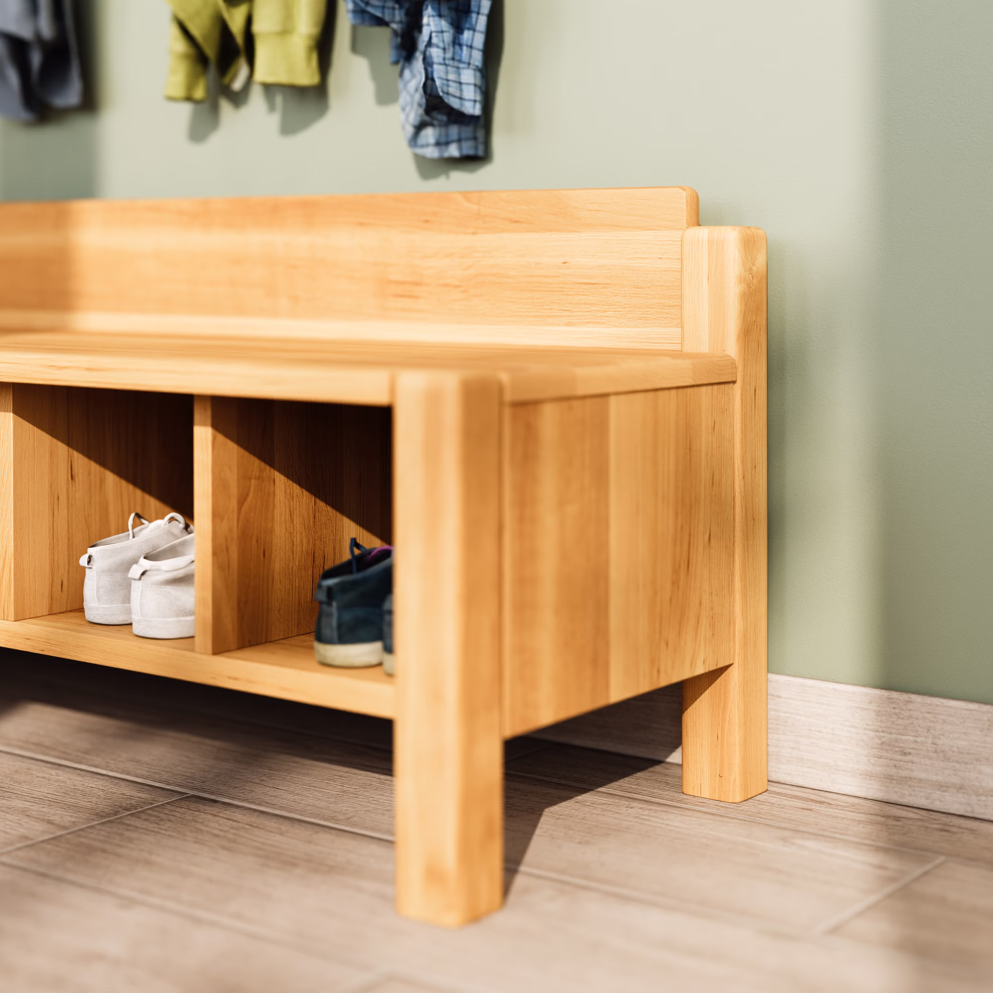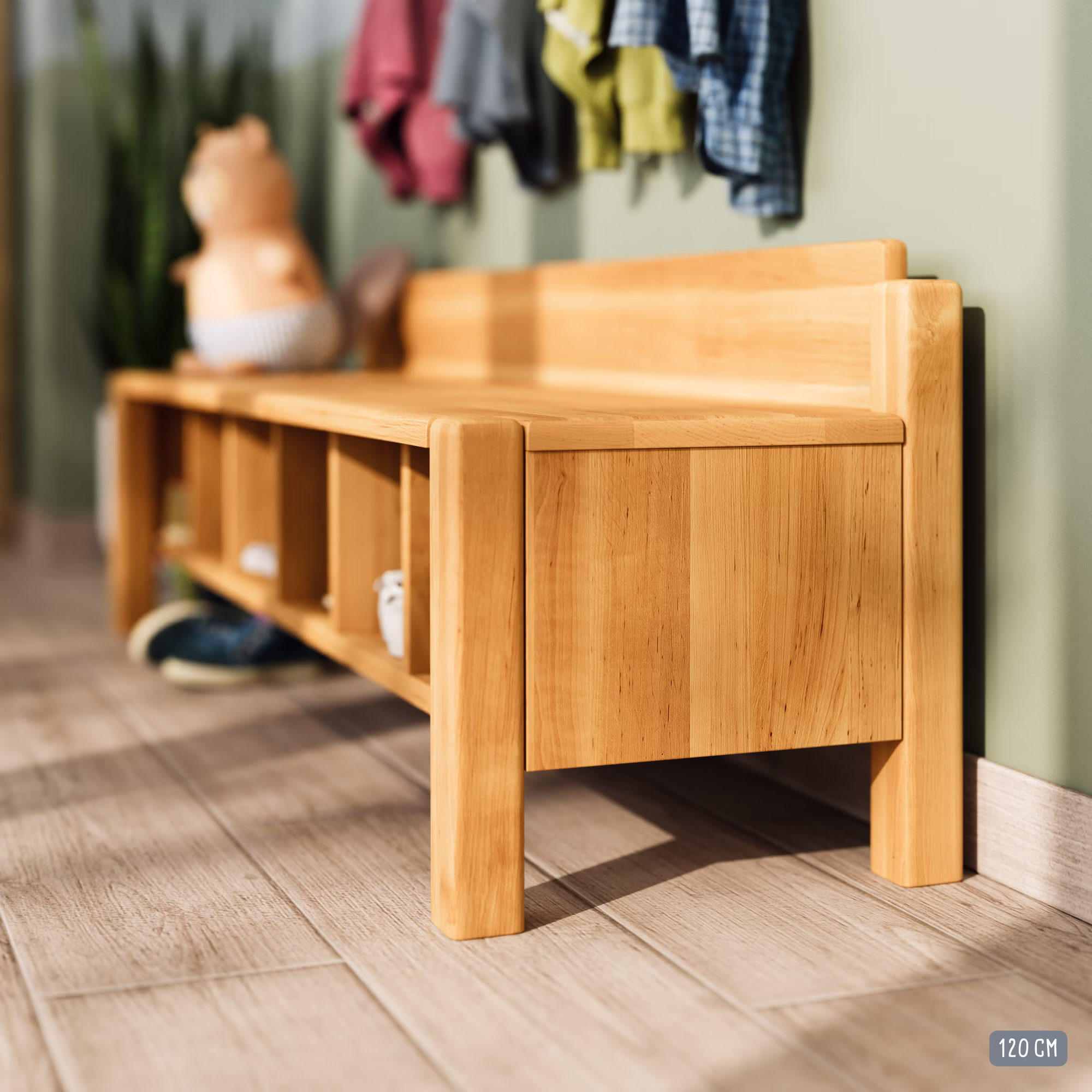 Die durchdachte Ausstattung für Flur, Kinderzimmer und Kita: Die Robin Naturholzmöbel-Serie.