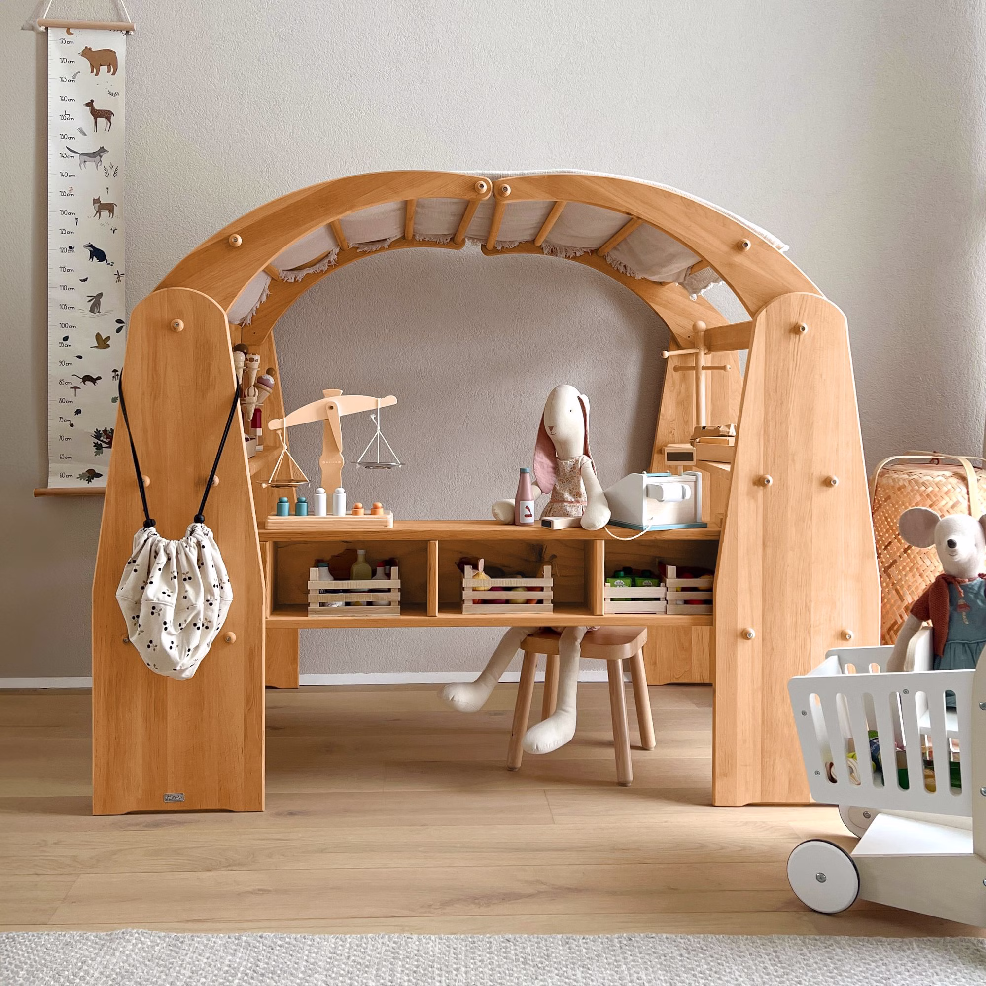 Die Krönung für 2 Anna Spielregale Artikel Nr. 22149. Das Dach mit durchdachten Steckverbindungen verwandelt zwei Anna Spielregale in unser originales Anna Spielhaus®. So entsteht eine Räuberhöhle, ein Puppentheater oder einfach einen kuscheligen Rückzugsort. Mit einem Anna Kaufladeneinsatz ergeben sich noch viele weitere Spielmöglichkeiten!