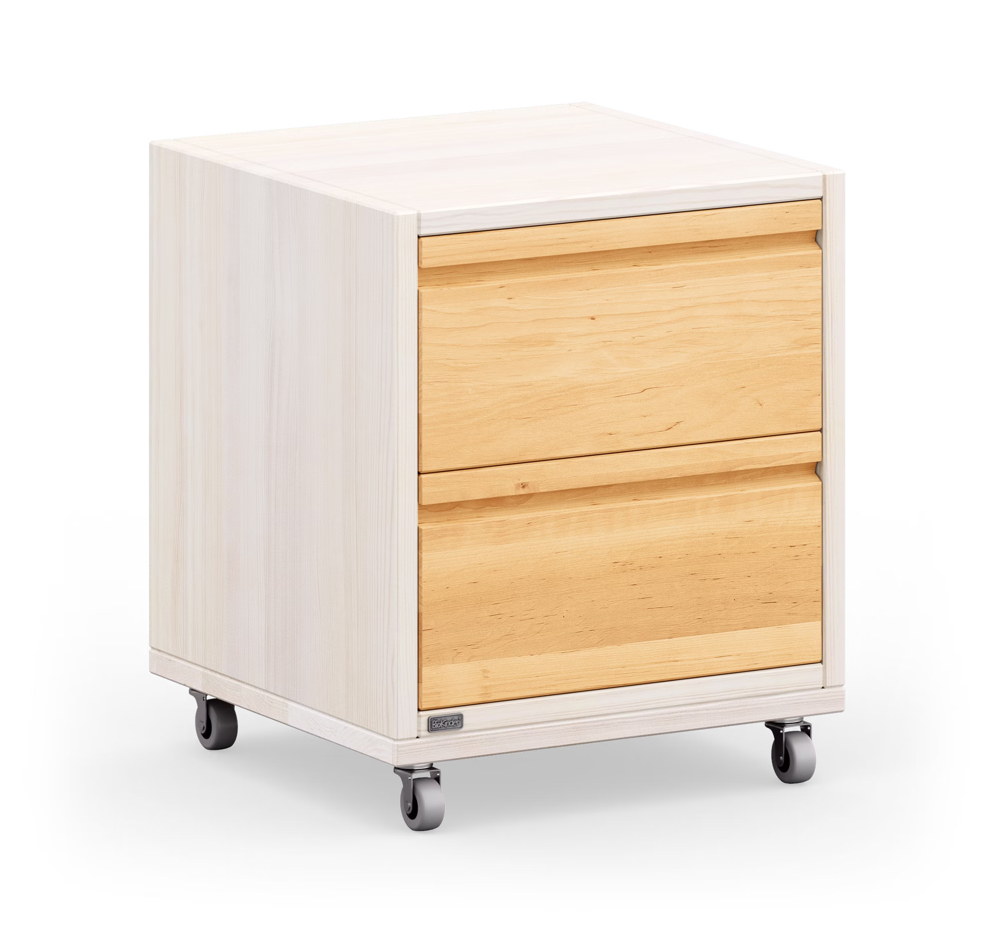 Unser Laura Rollcontainer mit zwei Schubladen wird aus Bio-Massivholz gefertigt und ist die praktische Ergänzung für jeden Schreibtisch im Kinderzimmer oder Büro. Die Schubladen können farblich auf die Einrichtung abgestimmt werden und setzen so fröhliche Farbakzente im Kinderzimmer.