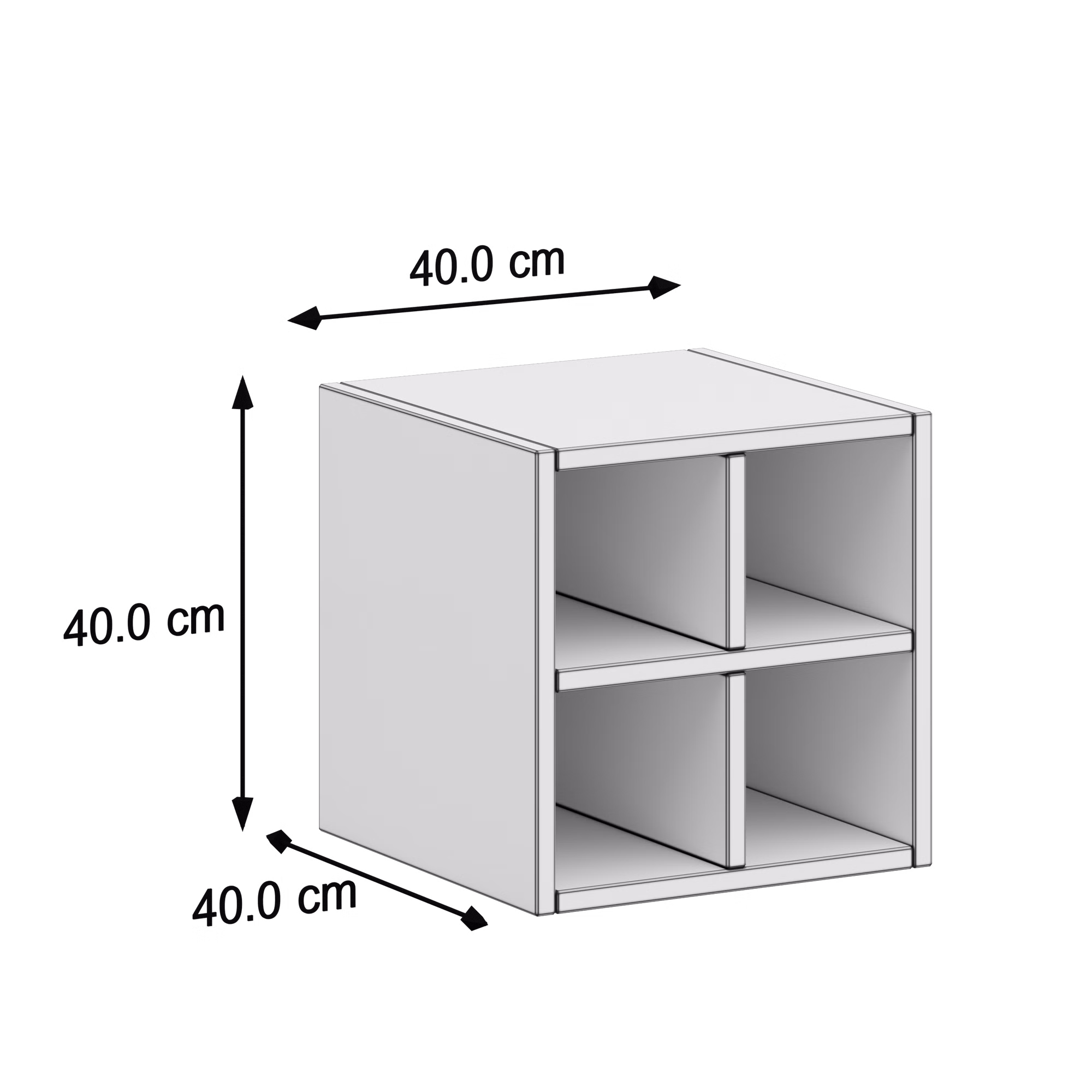 • 1x Regalwürfel Office mit vier Fächern: Außen L 40 x B 40 x H 40 cm