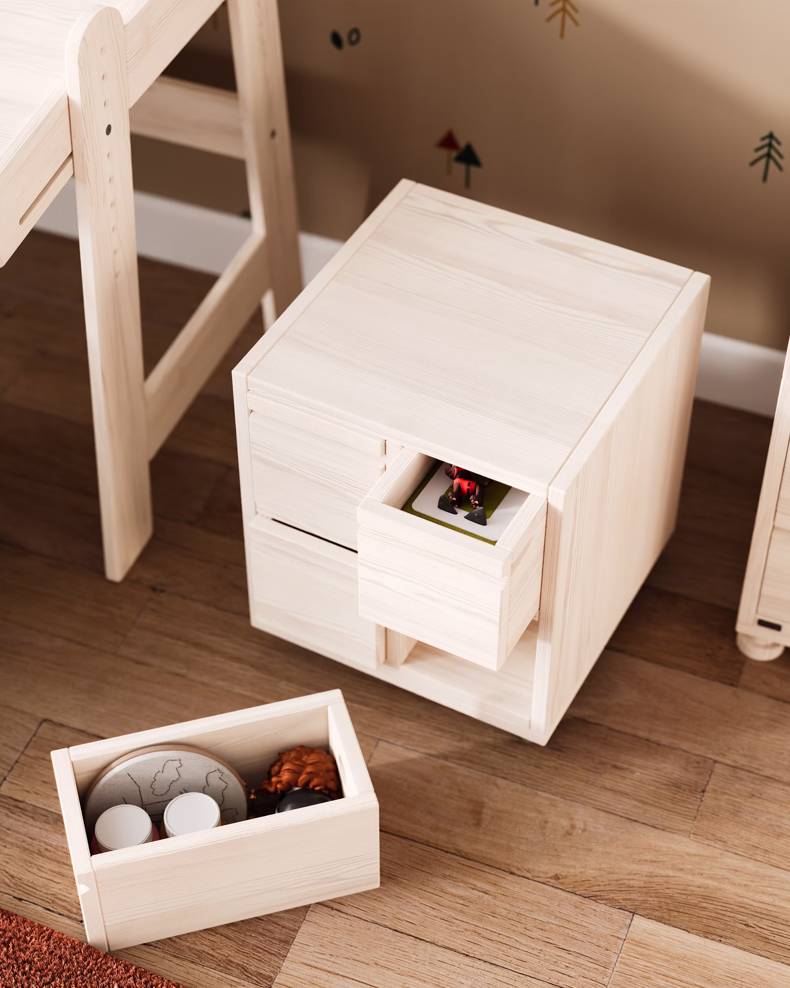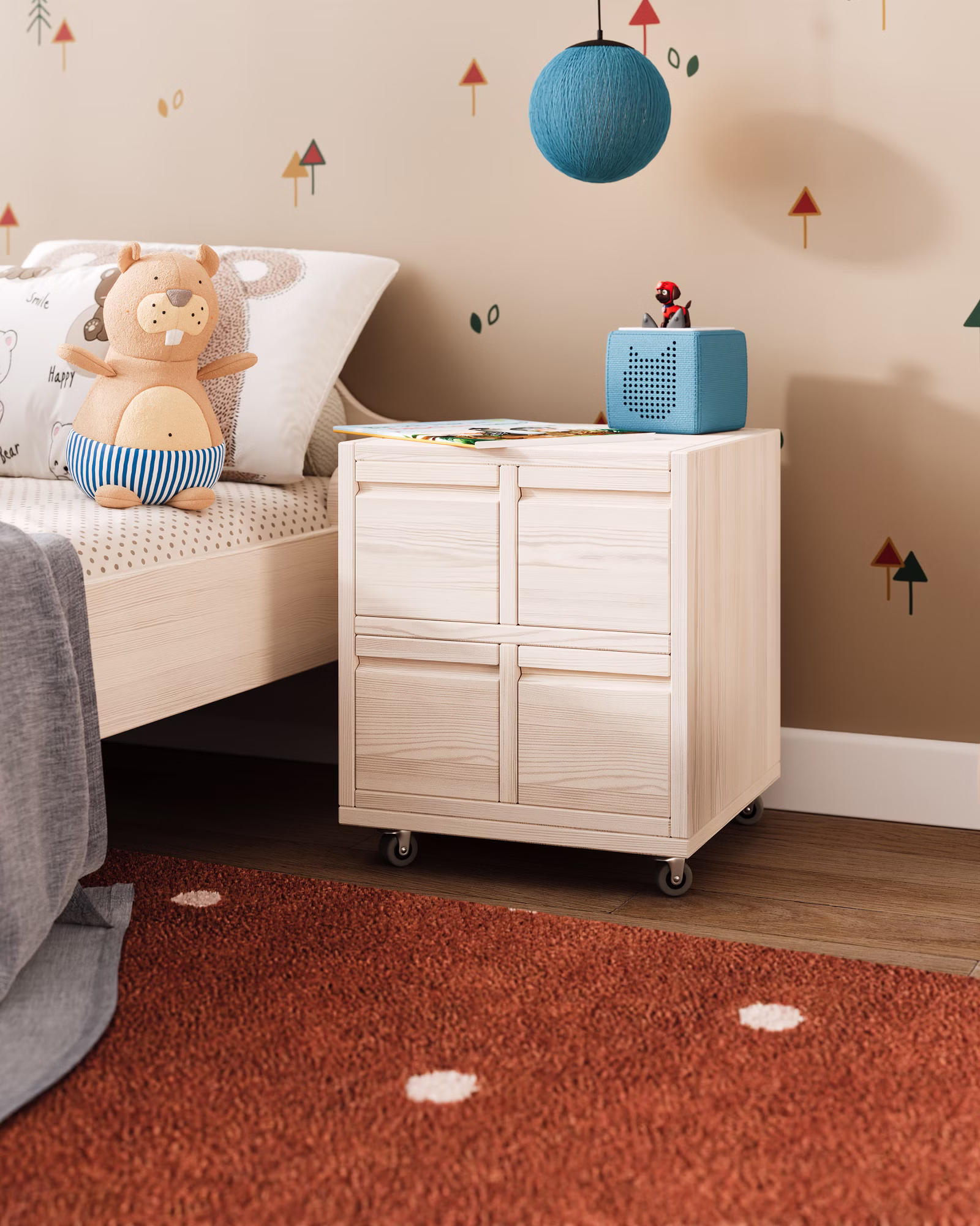 Unser Laura Rollcontainer mit vier Office-Boxen wird aus Bio-Massivholz gefertigt und ist die praktische Ergänzung für jeden Schreibtisch im Kinderzimmer oder Büro. Die Schubladen können farblich auf die Einrichtung abgestimmt werden und setzen so fröhliche Farbakzente im Kinderzimmer.
