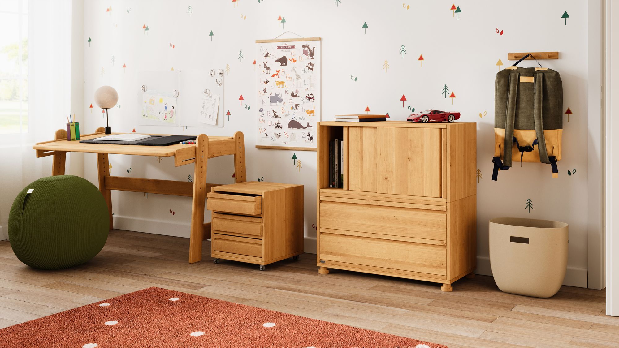 Das Massivholz stammt aus zertifizierter Forstwirtschaft. Gefertigt aus Bio-Erlenholz (natur) und Bio-Kiefernholz (weiß). Die Beschaffenheit jedes Möbelstücks wird nur bei BioKinder durch bioola® nature Öl bzw. bioola® colour Lasur aus natürlichen Erd- und Mineralpigmenten und pflanzlichem Carnaubawachs erhalten und speichel- sowie schweißecht natürlich veredelt.