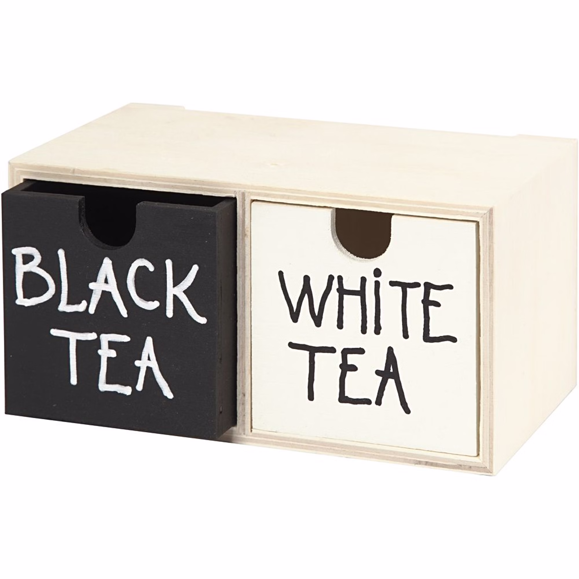 Diese kleine Schubladenbox aus hellem Holz ist die ideale Grundlage für kreative DIY-Projekte. Die Mini-Kommode verfügt über zwei quadratische, herausnehmbare und wendbare Schubladen, die individuell bemalt, beklebt oder beschriftet werden können.