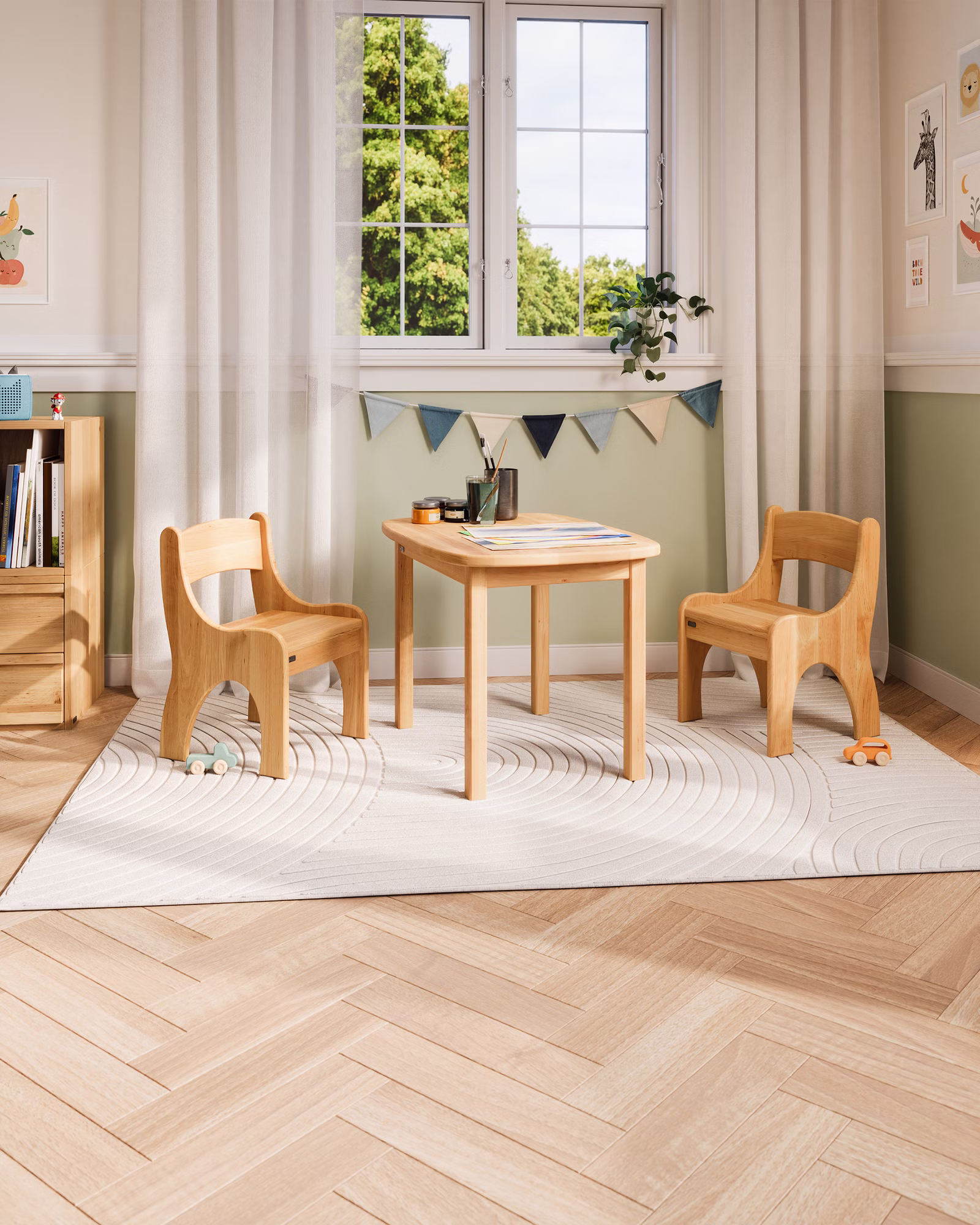 Der Levin Kindertisch hat die für Kinder optimale Höhe von 53 cm. Er ist stabil, standsicher und hält jede dynamische Mal- und Bastelaktion aus.