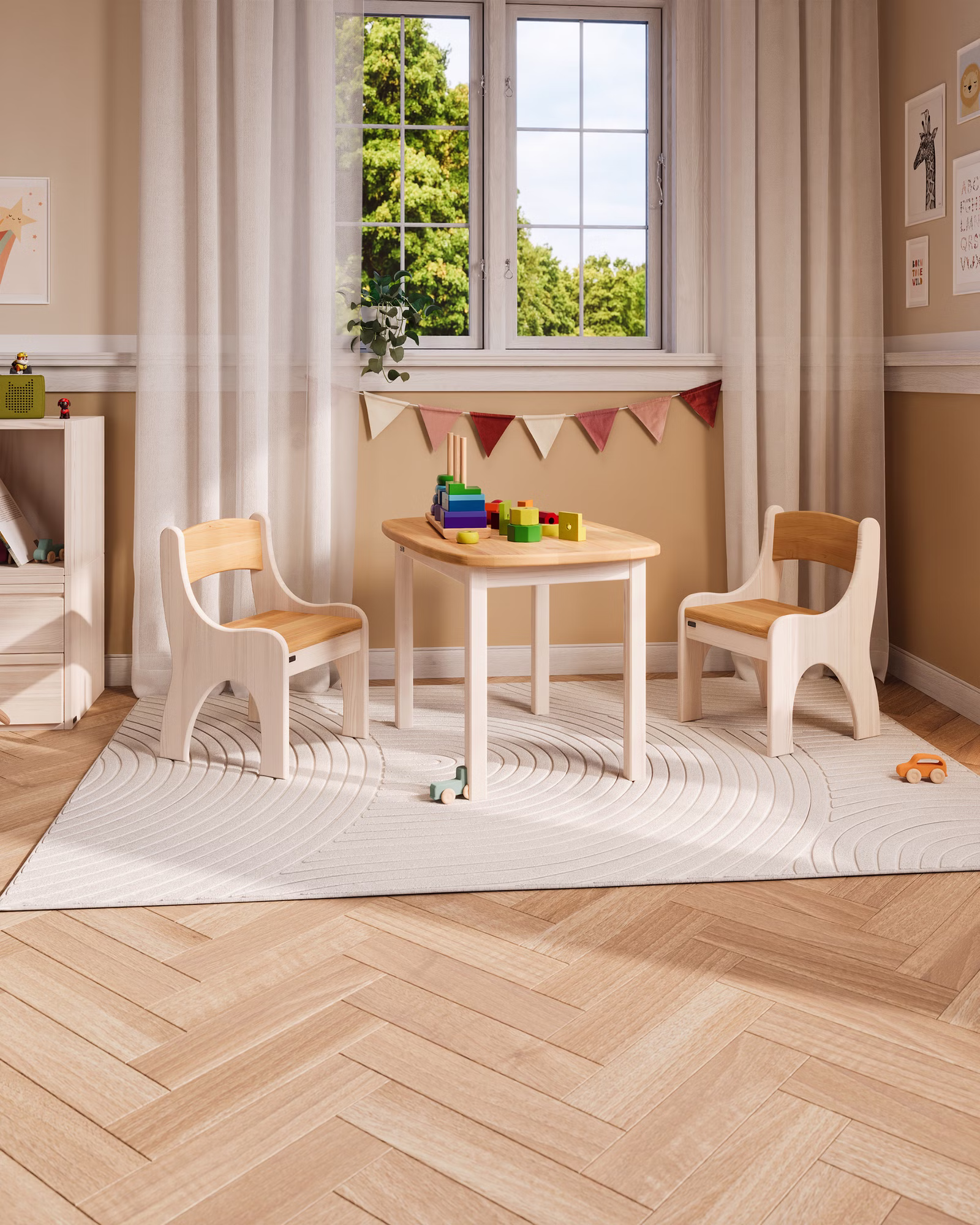 Der Levin Kindertisch hat die für Kinder optimale Höhe von 53 cm. Er ist stabil, standsicher und hält jede dynamische Mal- und Bastelaktion aus.