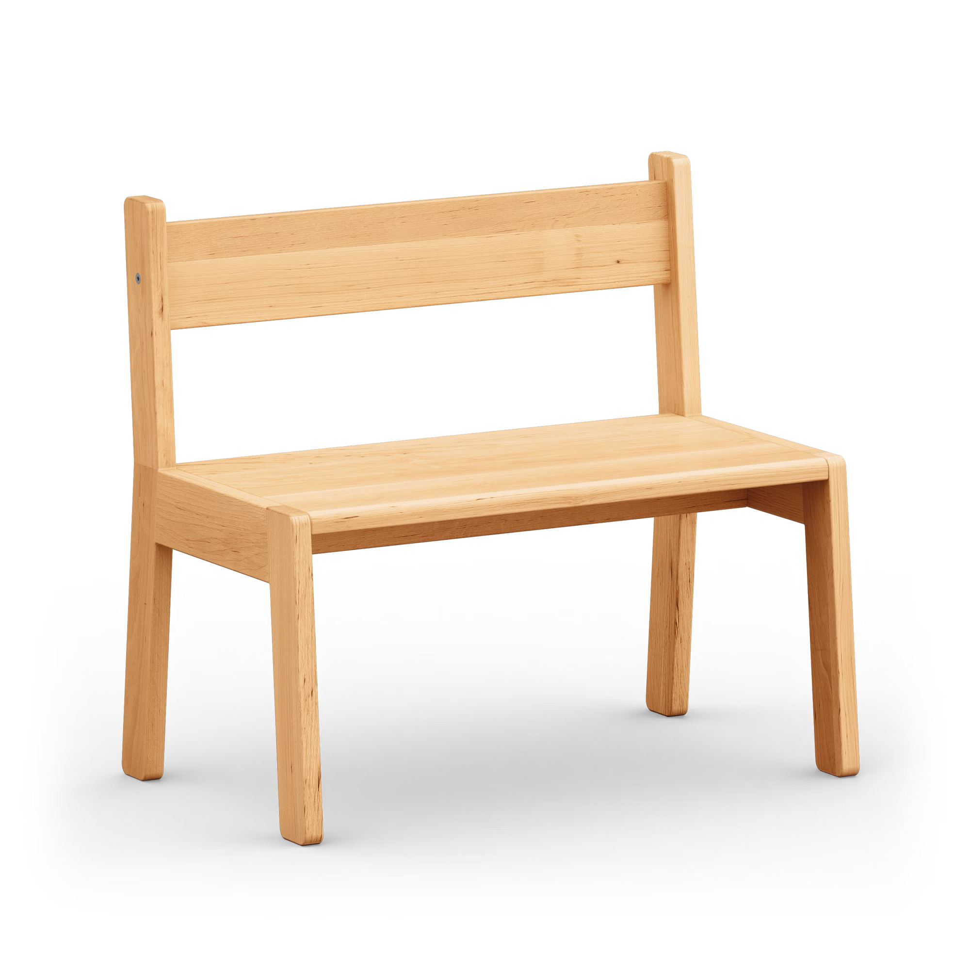 Die Sitzbank bietet Platz für zwei Kinder und lädt zum gemeinsamen Spielen, Malen oder Lernen ein. Klare Linien, ausgewogene Proportionen und die stabile Massivholz-Konstruktion sorgen für Komfort und ein angenehmes Sitzgefühl.