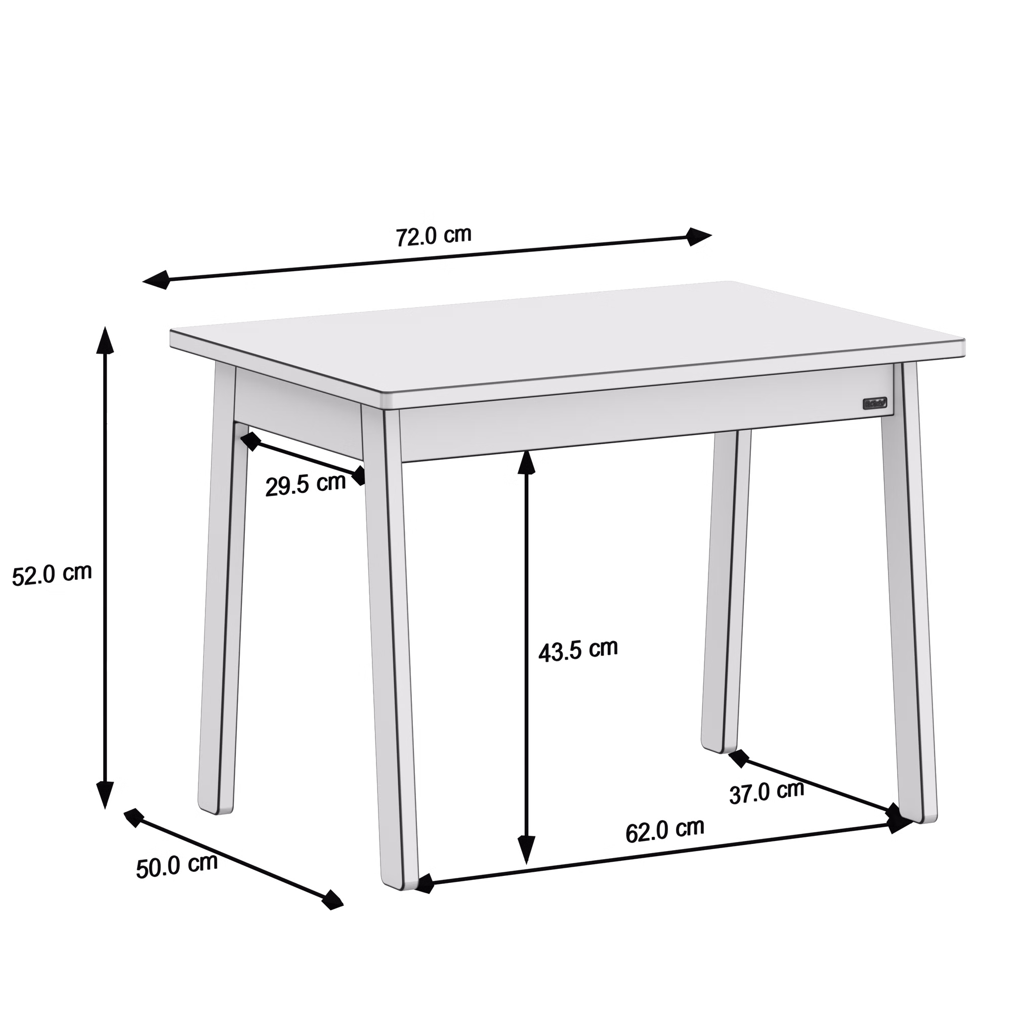 - Maße Kindertisch: B 72 x T 50 x H 52 cm
