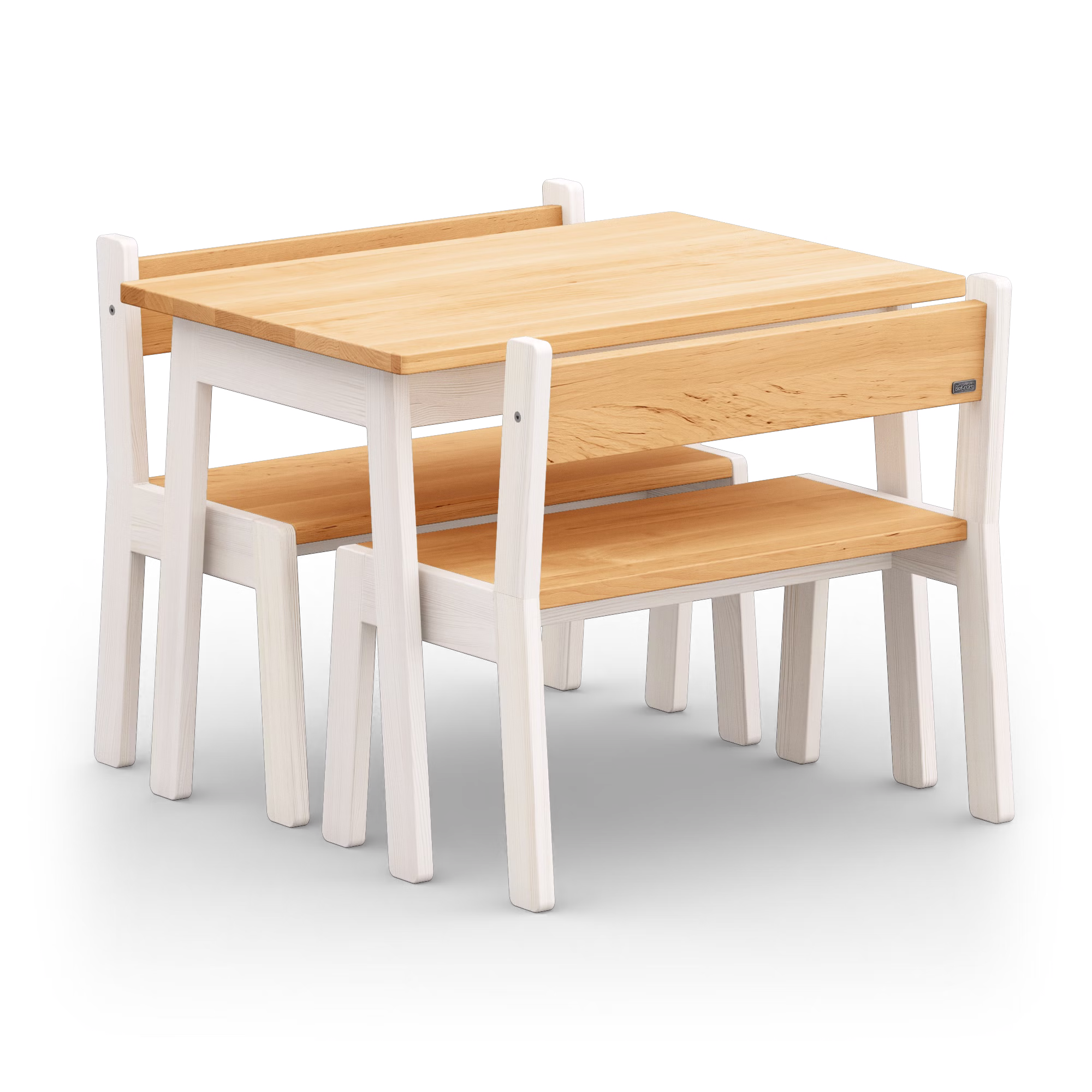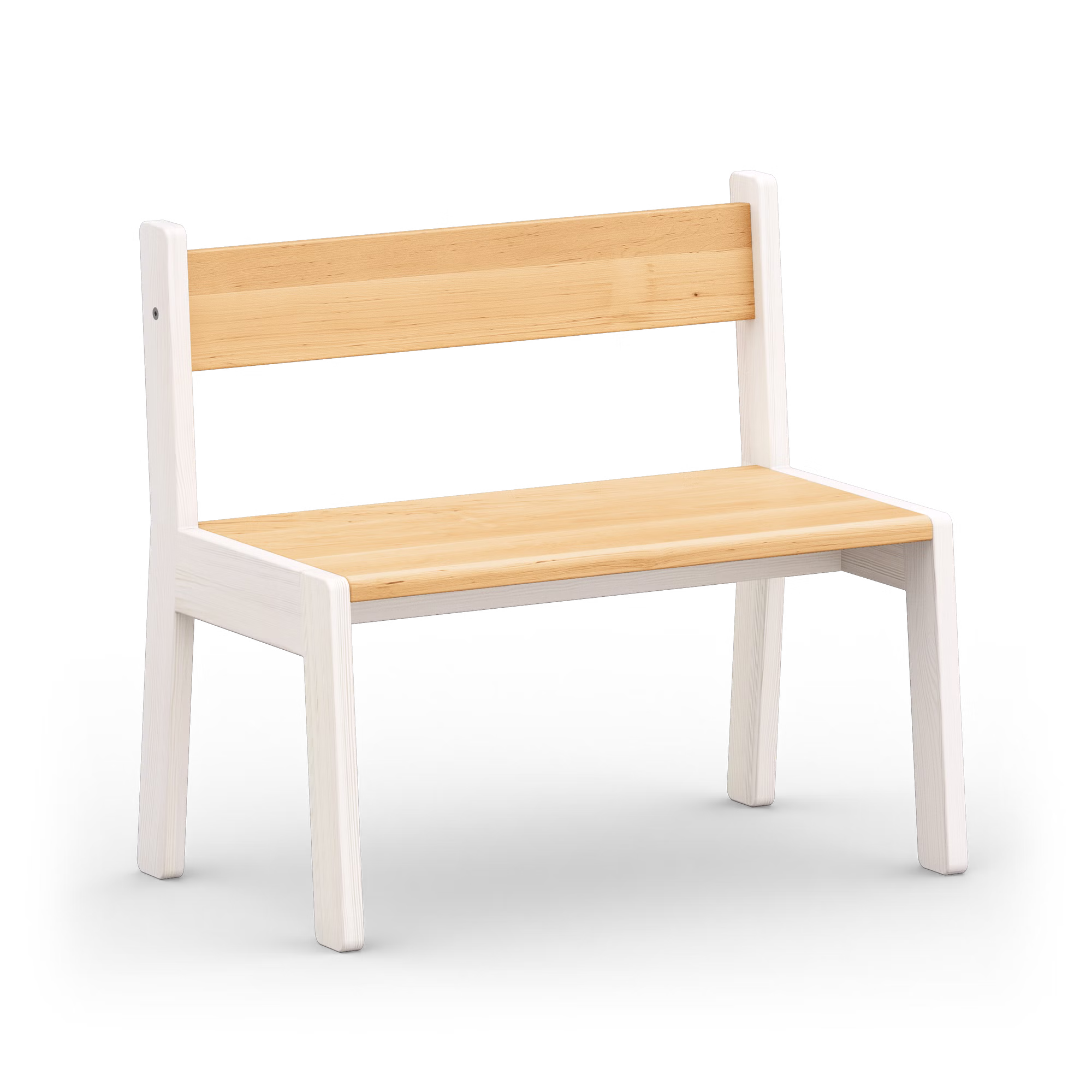 Die Sitzbank bietet Platz für zwei Kinder und lädt zum gemeinsamen Spielen, Malen oder Lernen ein. Klare Linien, ausgewogene Proportionen und die stabile Massivholz-Konstruktion sorgen für Komfort und ein angenehmes Sitzgefühl.