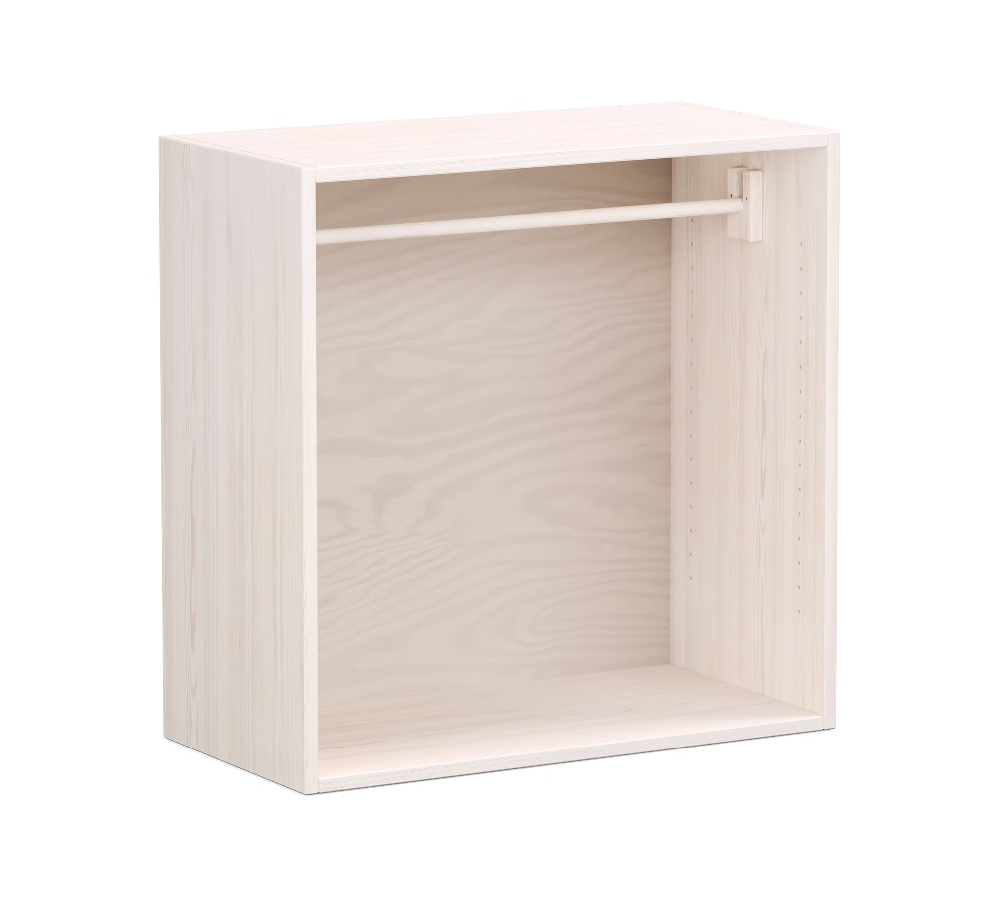 Der Würfel kann mit passenden Einlegeböden oder einer Kleiderstange aus dem Zubehör individuell erweitert werden.