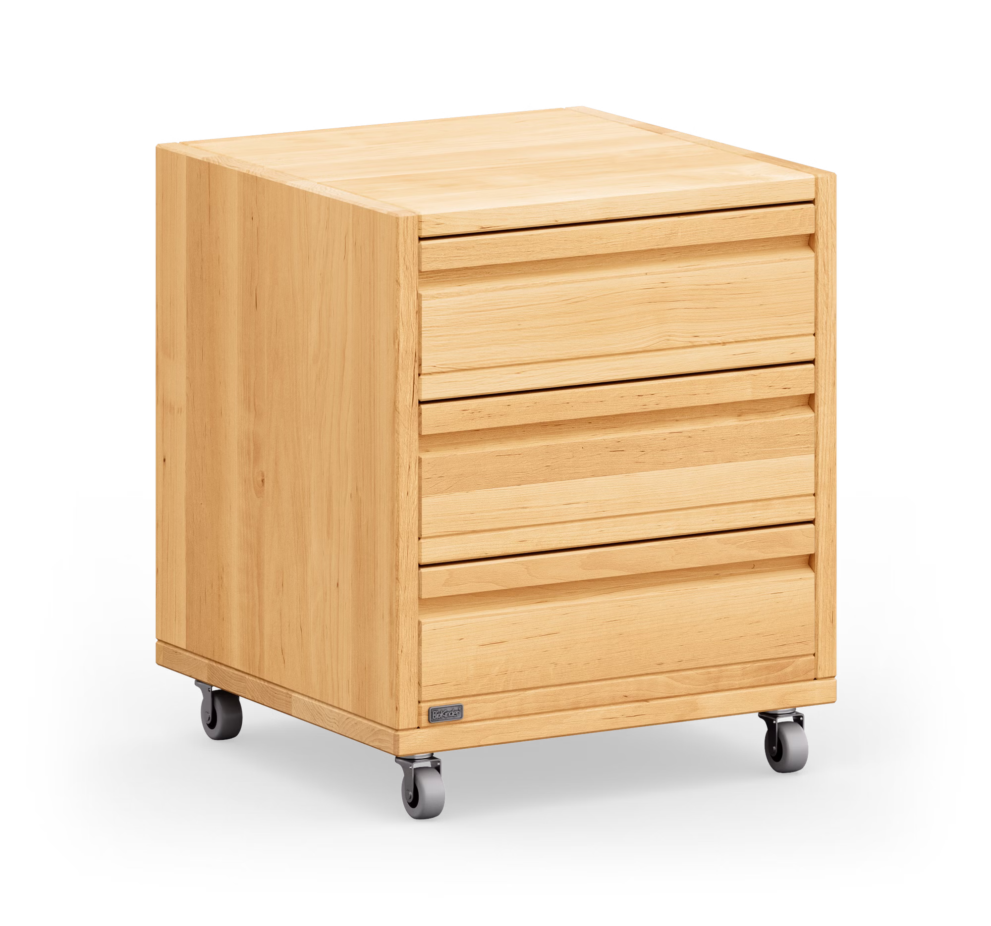Der passende Regalsockel bildet die formschöne Basis für den Laura Rollcontainer und kann mit Füßen oder Rollen individuell an die eigenen Wünsche angepasst werden.