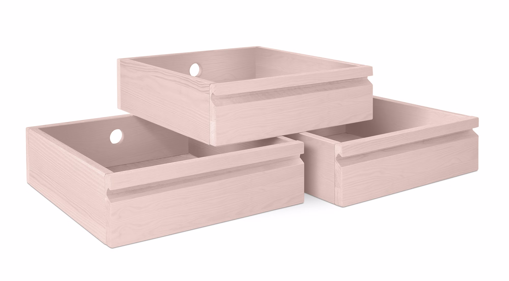 Die drei Schubladen sorgen für eine verbesserte Übersichtlichkeit und bieten Platz für Papier, Schulhefte und vieles mehr. Die Schubladen lassen sich voll ausziehen und bieten so einen Einblick bis in den hintersten Bereich des Schubkastens. Dank der elegant gefrästen Griffmulde vorne und dem funktionalen Griffloch hinten können die Schubladen beidseitig genutzt werden.