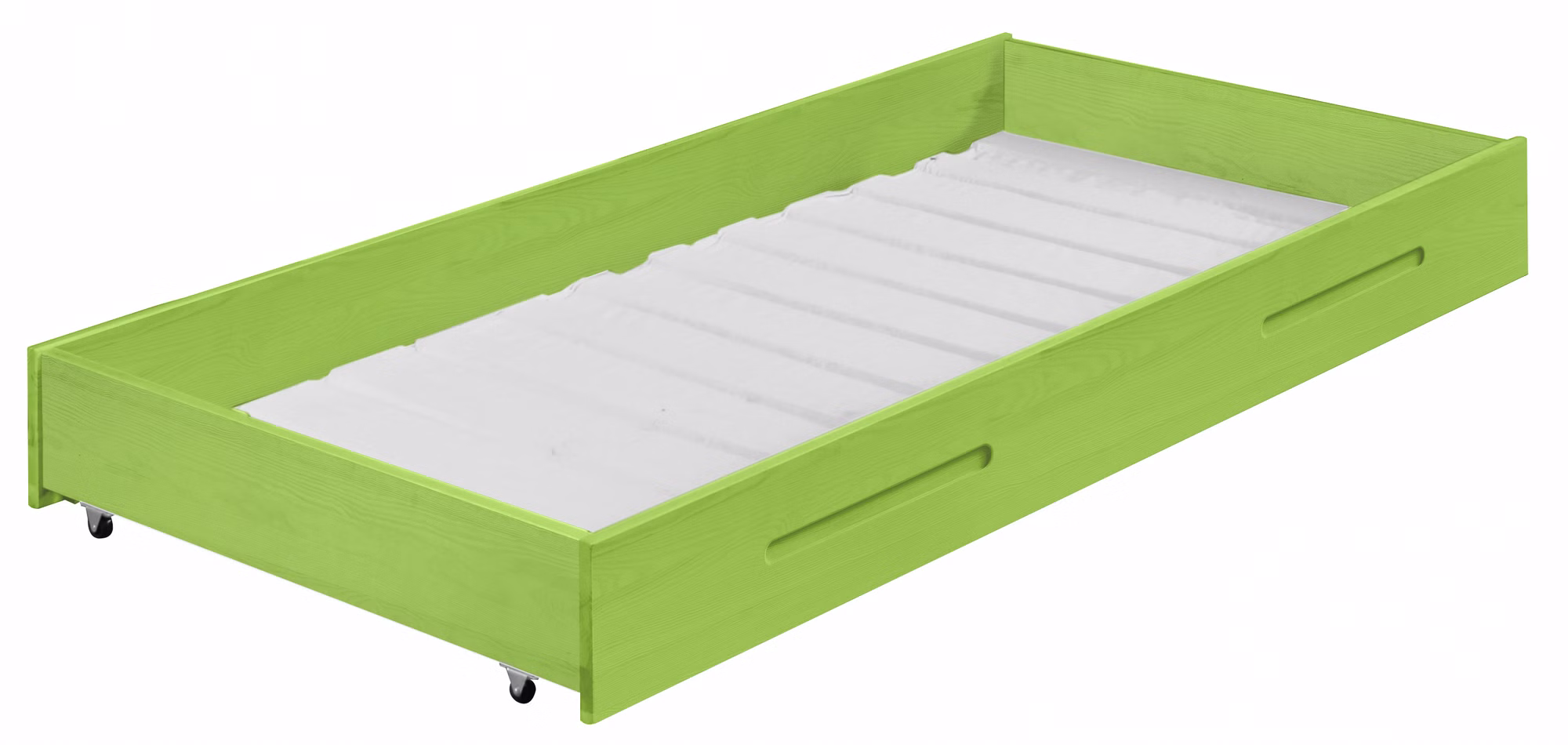 Die Griffmulden und Rollen ermöglichen ein rückenschonendes Herausziehen des Bettkastens.