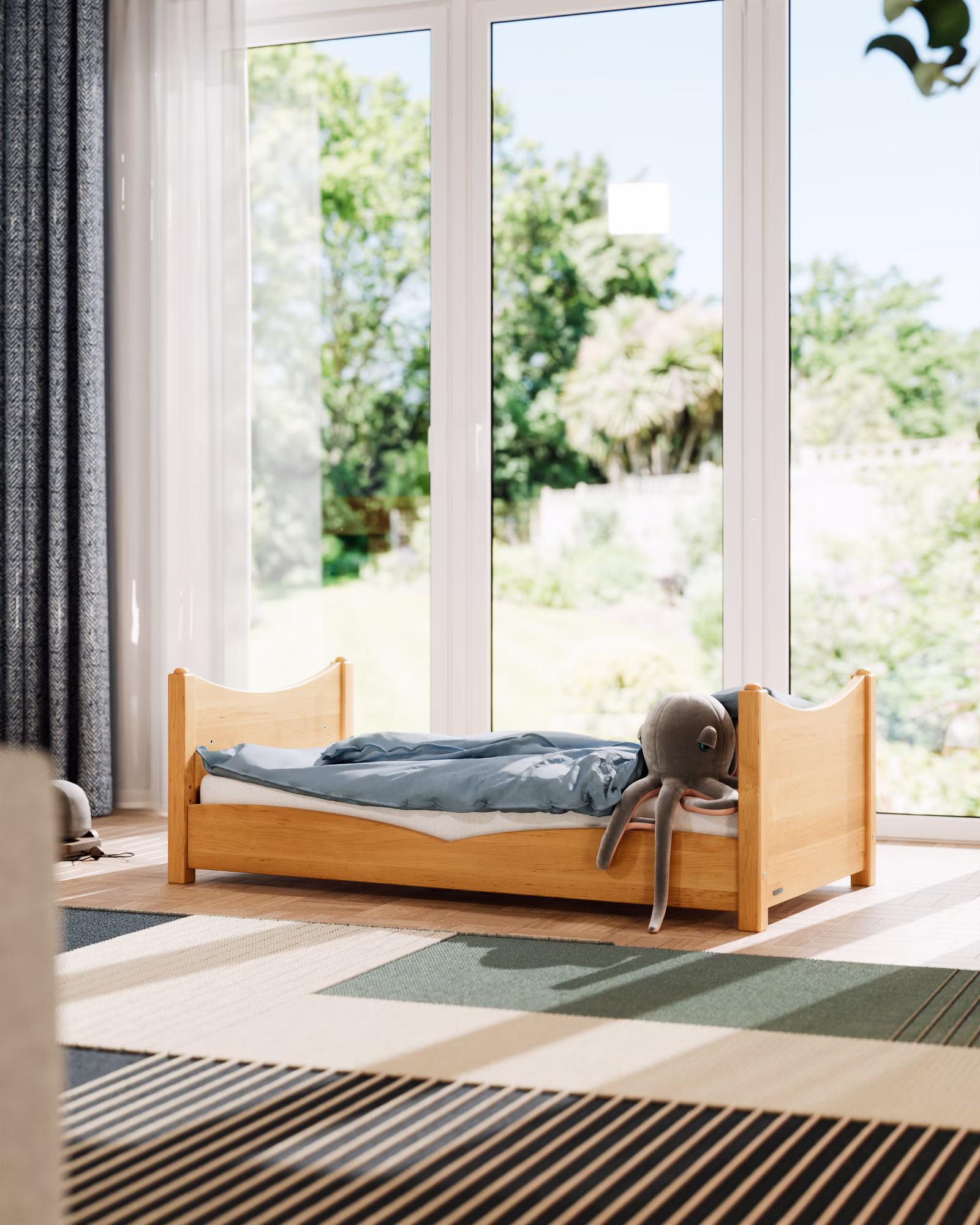 Massivholz aus nachhaltiger Forstwirtschaft. BioKinder Möbel werden aus massivem Erlenholz (natur) und Kiefernholz (weiß) gefertigt. Die natürliche Beschaffenheit jedes Möbelstücks wird durch bioola® nature Öl bzw. bioola® colour Lasur aus natürlichen Erd- und Mineralpigmenten und pflanzlichem Carnaubawachs erhalten und weiter veredelt.