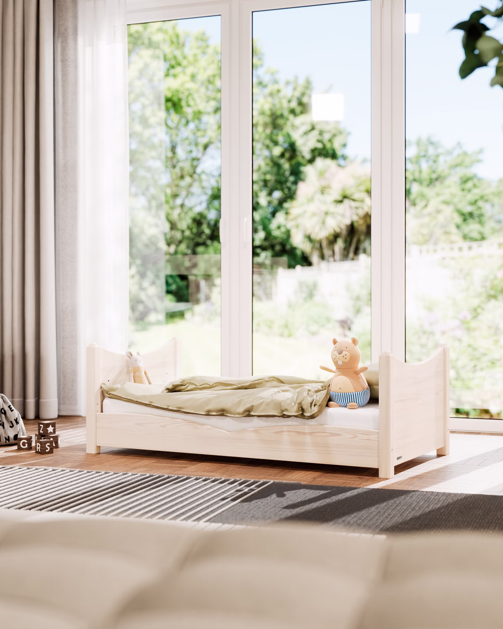 Massivholz aus nachhaltiger Forstwirtschaft. BioKinder Möbel werden aus massivem Erlenholz (natur) und Kiefernholz (weiß) gefertigt. Die natürliche Beschaffenheit jedes Möbelstücks wird durch bioola® nature Öl bzw. bioola® colour Lasur aus natürlichen Erd- und Mineralpigmenten und pflanzlichem Carnaubawachs erhalten und weiter veredelt.