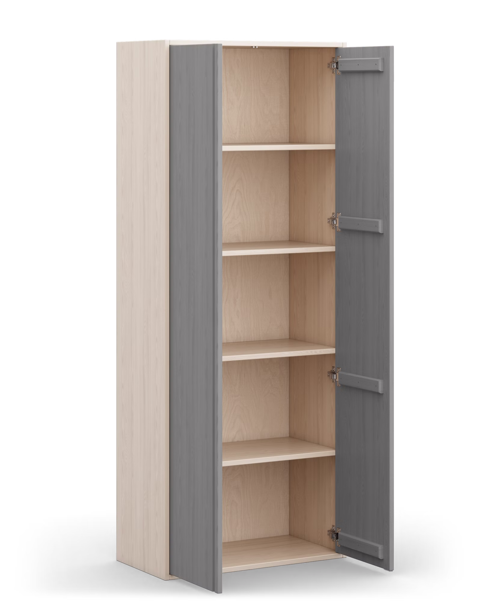 Mit gefrästen Griffkanten und einem Softclose-Mechanismus für leises Schließen der Türen bieten die Elemente sowohl Funktionalität als auch Komfort. Die Türen können optional mit einem Schloss ausgestattet werden.