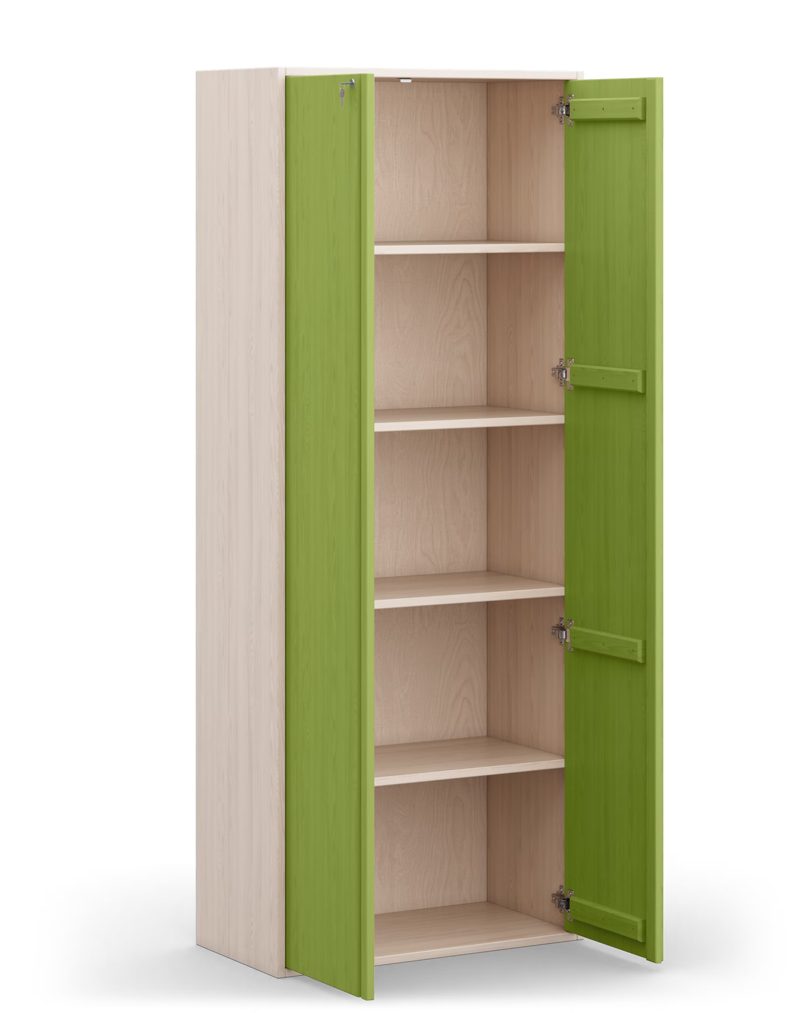 Mit gefrästen Griffkanten und einem Softclose-Mechanismus für leises Schließen der Türen bieten die Elemente sowohl Funktionalität als auch Komfort. Die Türen können optional mit einem Schloss ausgestattet werden.