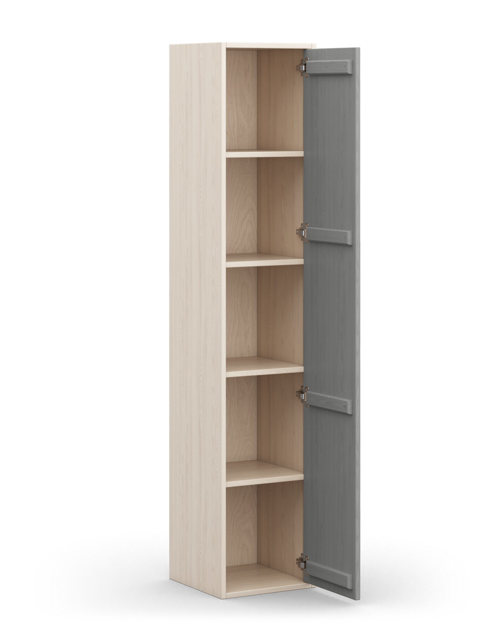 Mit gefrästen Griffkanten und einem Softclose-Mechanismus für leises Schließen der Türen bieten die Elemente sowohl Funktionalität als auch Komfort. Die Türen können optional mit einem Schloss ausgestattet werden.