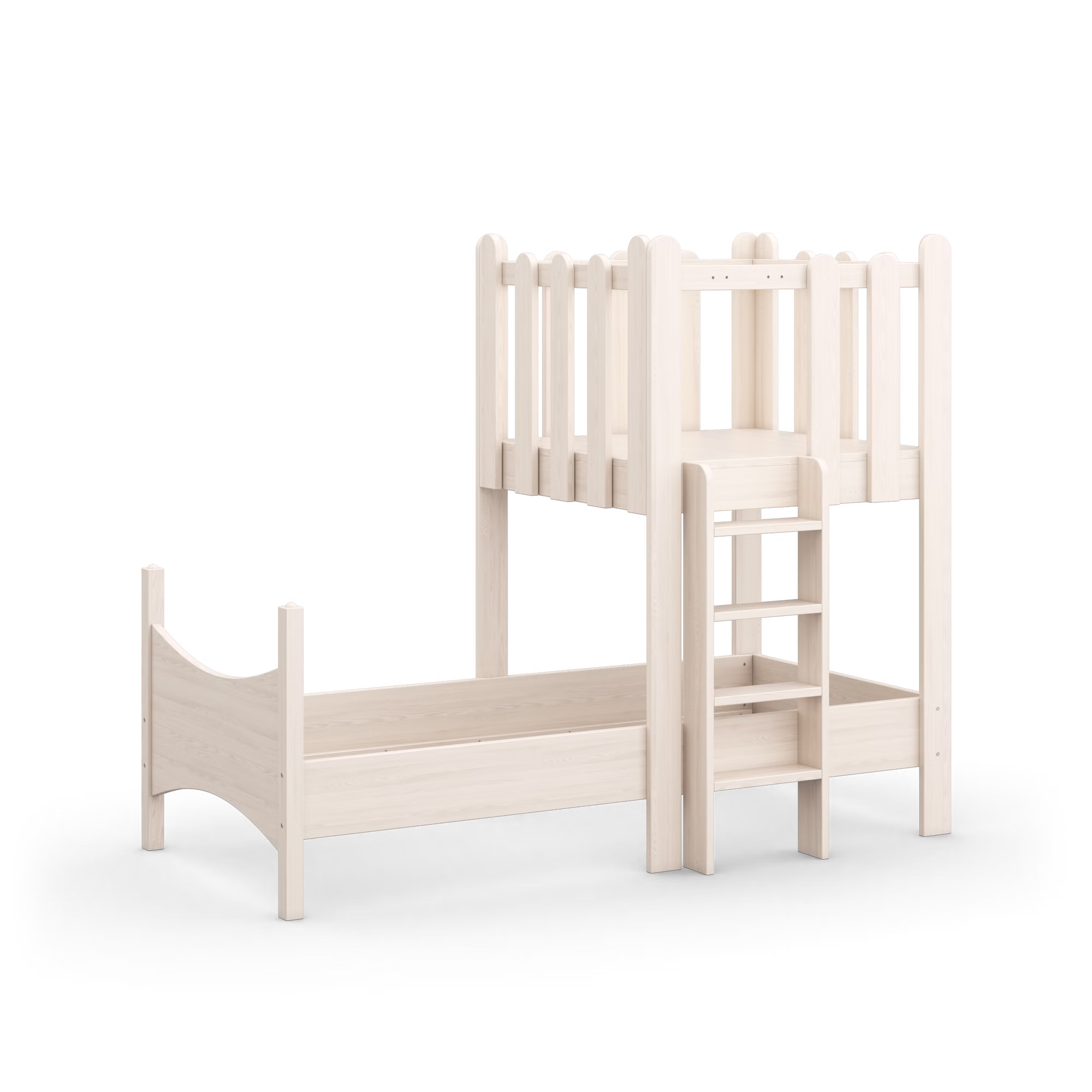 Mit dem Noah Komplett-Set mit Spielturm wird das Kinderzimmer zum tollen Indoor-Spielplatz. Das Bett und der Turm sind aus massivem Bio-Massivholz. Der Spielturm wird sicher und stabil mit dem Bett verbunden und verwandelt das Bett in ein Abenteuerbett, in dem man von tollen Abenteuern träumen kann. Später kann das Bett zu einem frei stehenden Einzelbett oder mit weiteren Elementen zu einem Himmelbett umgebaut werden und ist somit sehr wandelbar.