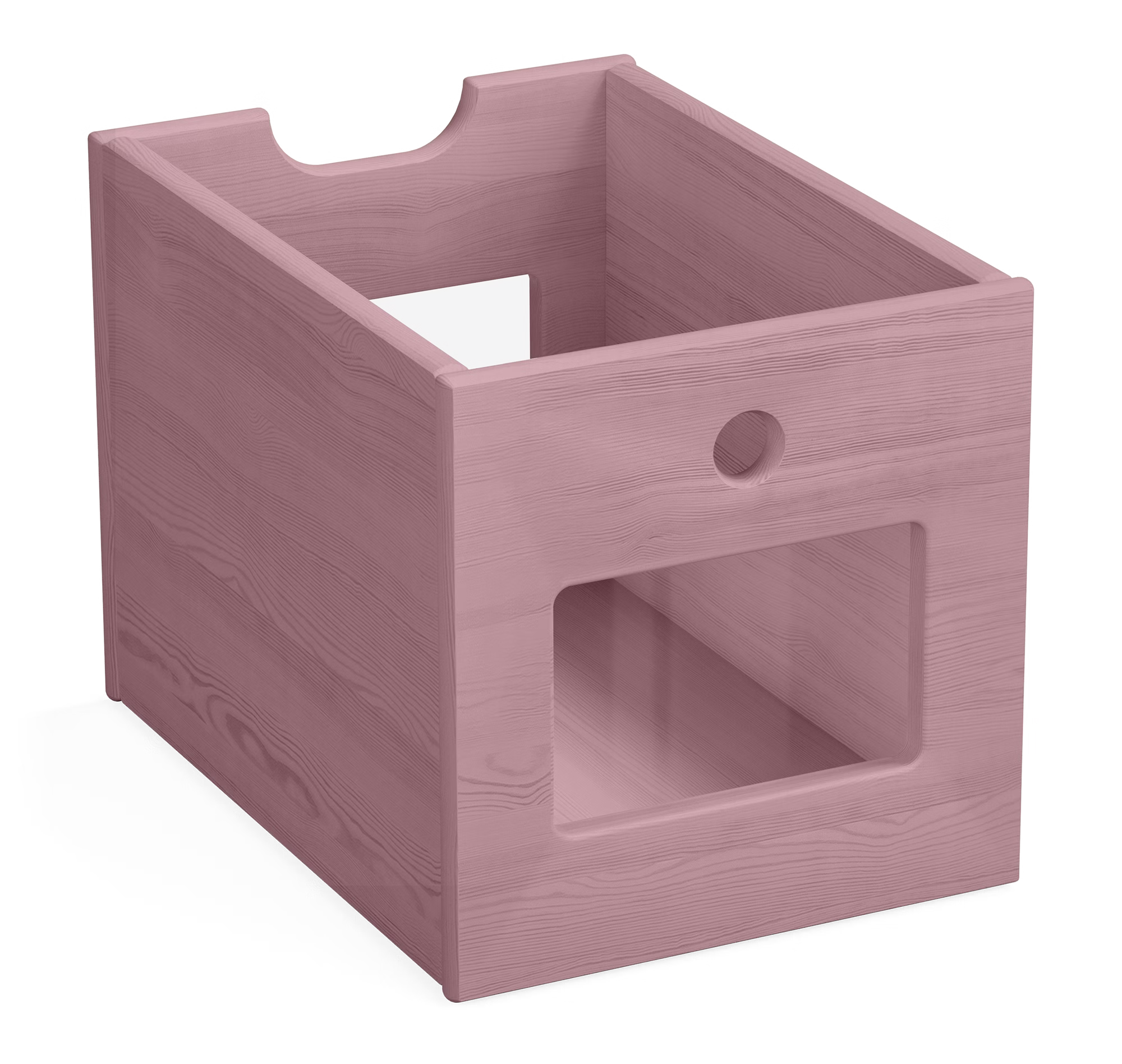 Die Boxen und Schubladen sind beidseitig nutzbar - mit elegant gefräster Griffmulde vorne und funktionalem Griffloch auf der Rückseite.