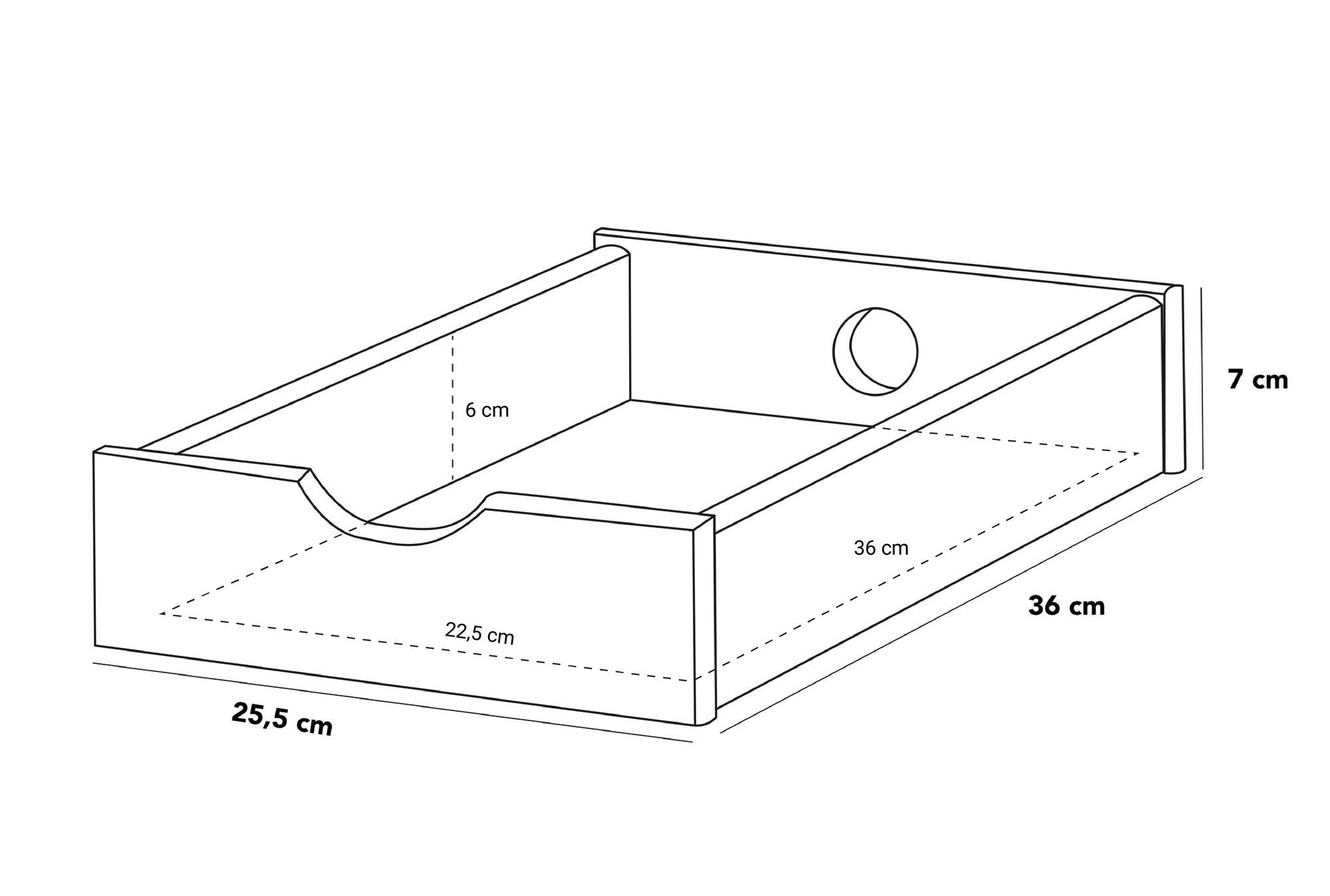 Außenmaße: H 64 x B 86 x T 37 cm, Regalbox: H 26 x B 25 x T 36 cm, Regalschublade: H 8 x B 25 x T 36 cm