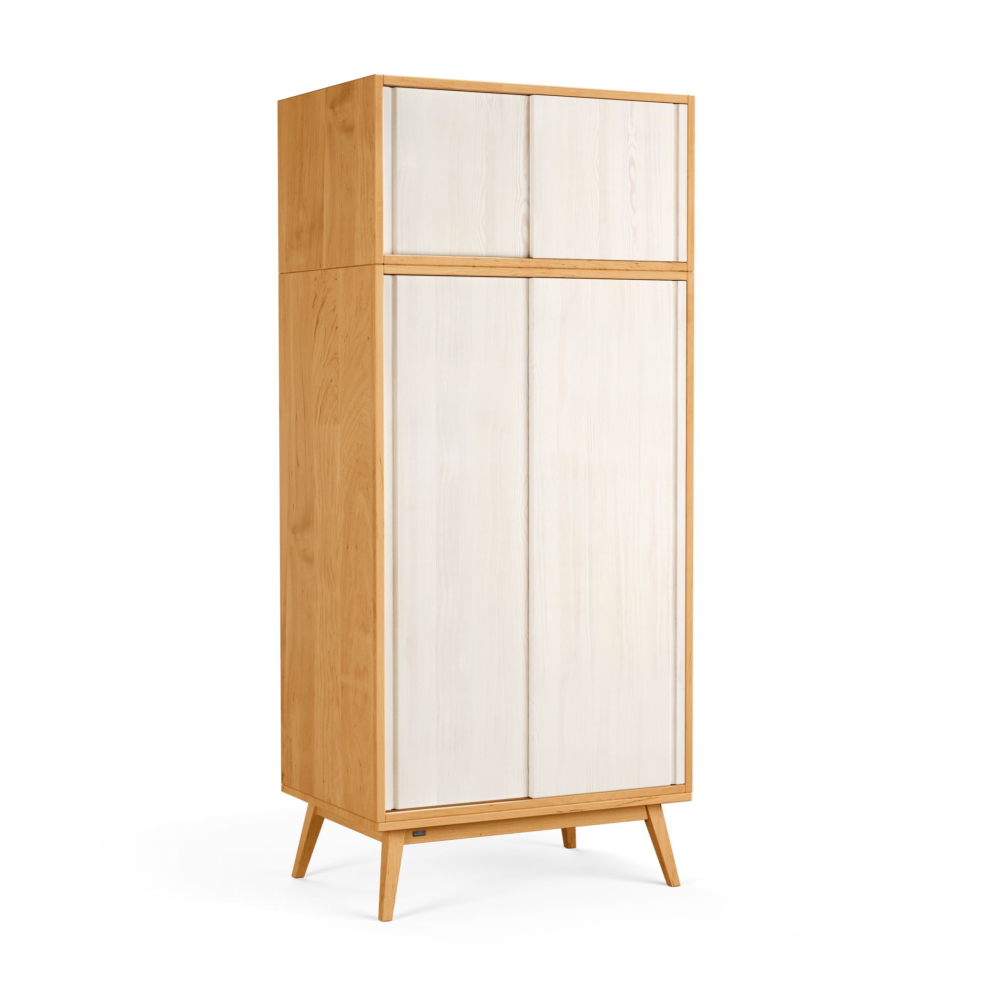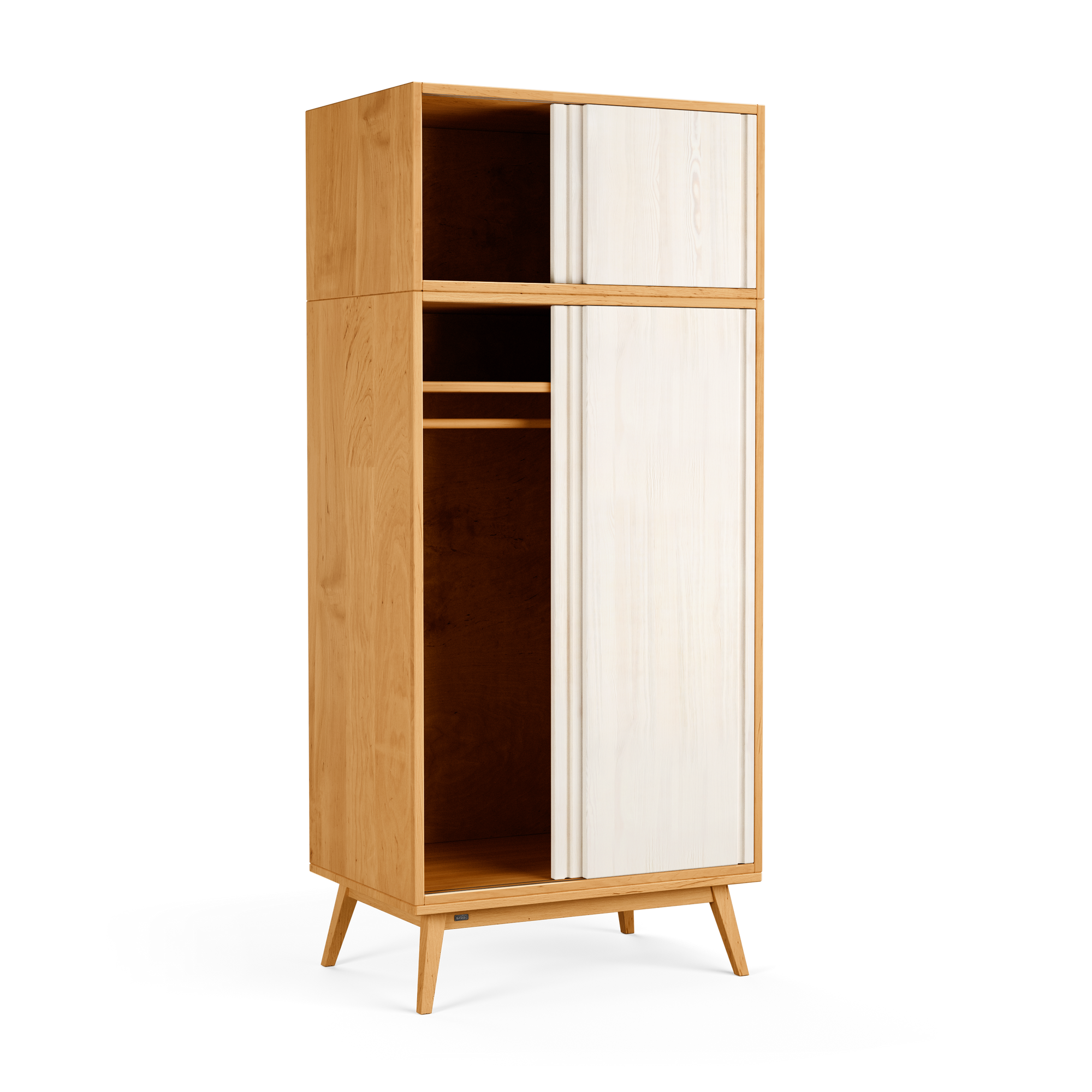 - Laura Retro Schiebetürenschrank: 1 fest installierte Kleiderstange, 1 Einlegeboden, 1 Schrankaufsatz, platzsparende Schiebetüren mit Alu-Leichtlaufschienen, elegant gefräste Griffmulden. Zusätzliche Einlegeböden erhältlich.