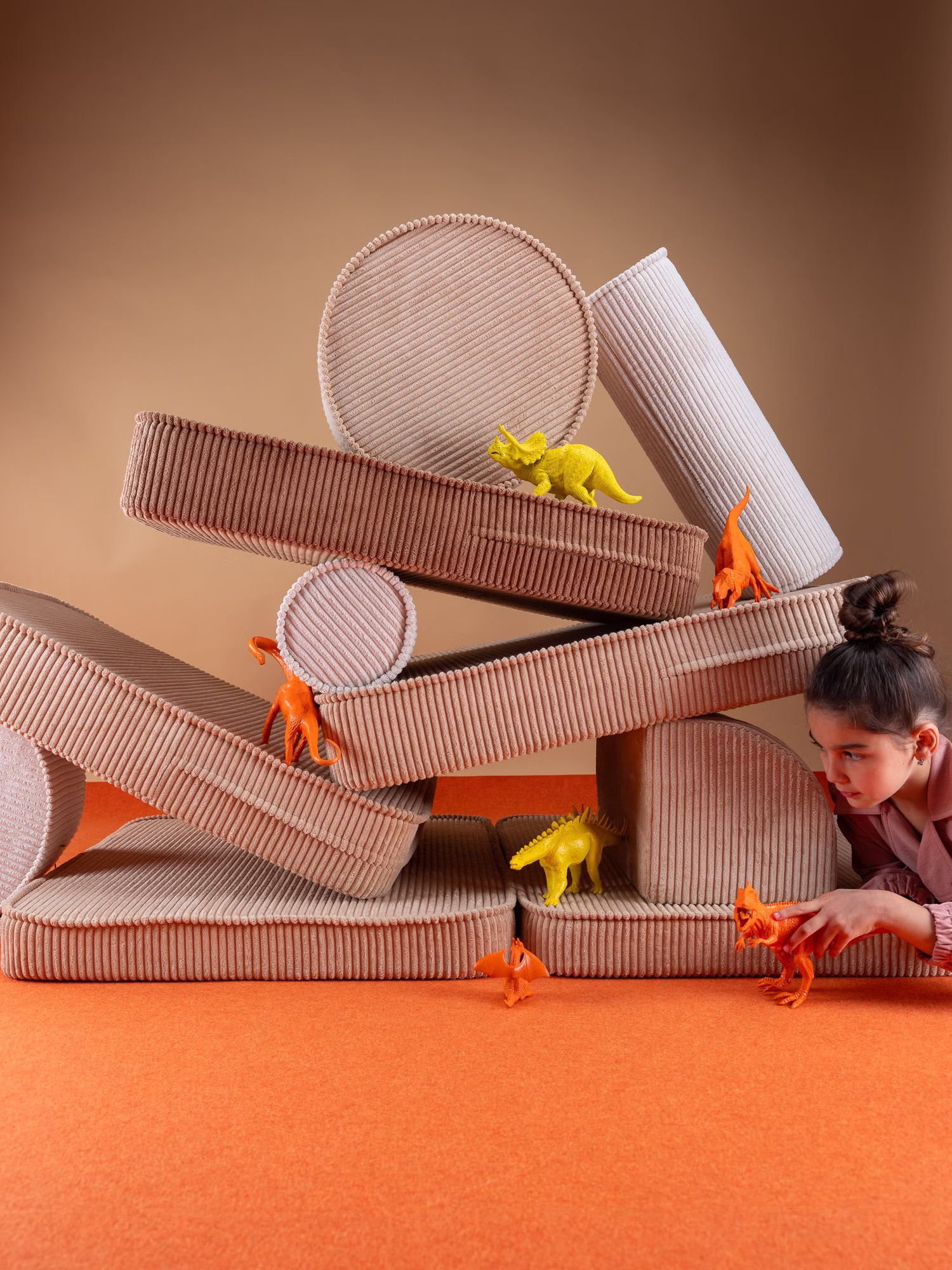 Das Sofa besteht aus 10 Teilen - zwei kleine Sitzkissen, zwei große Sitzkissen, zwei dreieckige Kissen als Rückenlehnen, zwei Rollkissen als Armlehnen und zwei runde Kissen - eine perfekte Kombination mit grenzenlosem Potenzial für fantasievolles Spiel und Entspannung. Das Spielsofa ist nicht nur ein Möbelstück - es ist eine Einladung in eine Welt voller Freude und Entdeckungen!