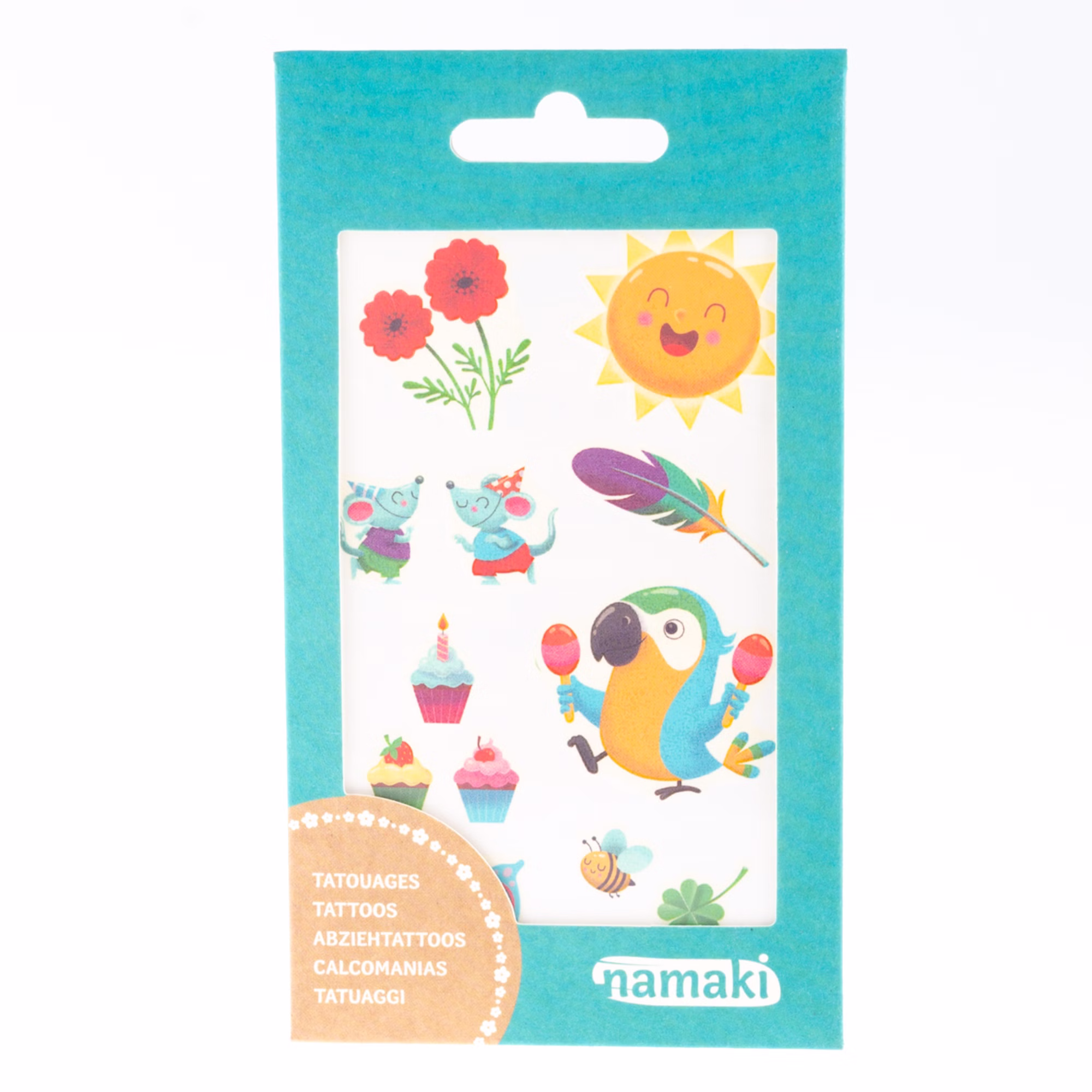 Die 2 Tattoo-Bögen mit verschiedenen Motiven lassen sich kinderleicht auftragen. Die Tattoos sind dermatologisch getestet für alle, die Farben lieben und immer gute Laune haben.