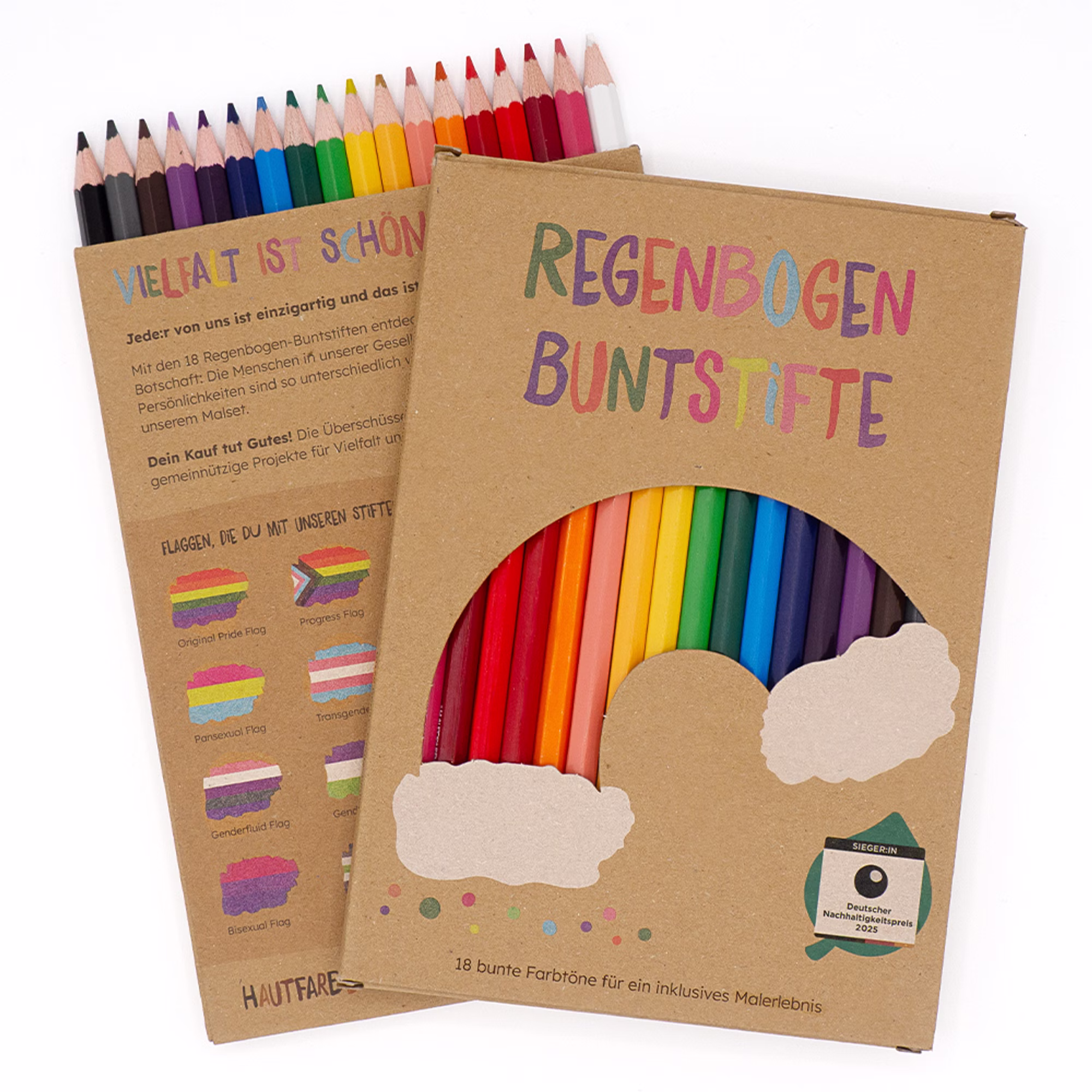 Vielfalt ist schön – und genau das zeigen die Regenbogen-Buntstifte von Hautfarben. Mit ihren 18 kräftigen Farbtönen malen Kinder die Welt so bunt, wie sie wirklich ist. Ob leuchtende Flaggen, strahlende Regenbögen oder fantasievolle Kunstwerke: Diese Stifte laden dazu ein, eigene Ideen farbenfroh auszudrücken und gleichzeitig zu entdecken, wie vielfältig Menschen, Identitäten und Persönlichkeiten in unserer Gesellschaft sind.