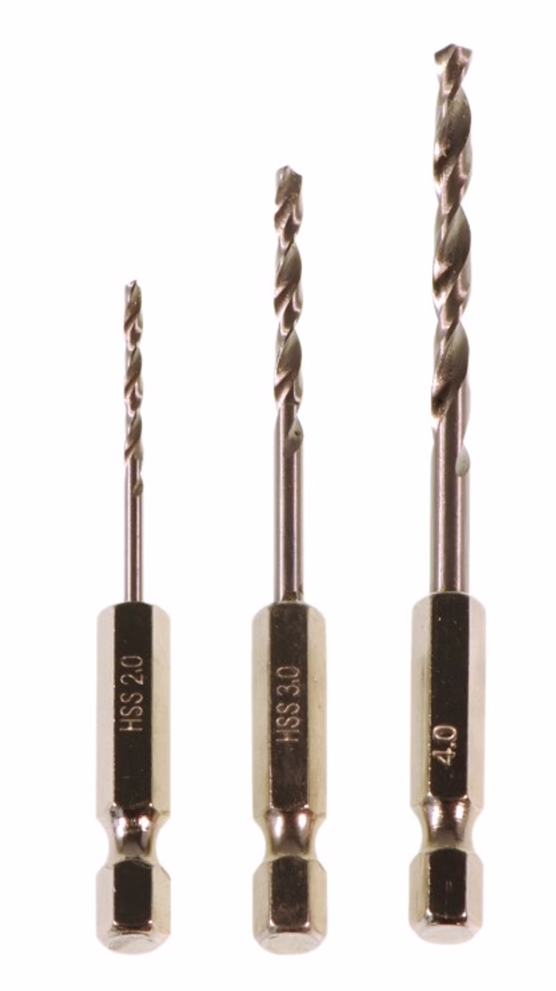 Die perfekte Ergänzung für deinen Werkzeugkasten. Jetzt kann endlich wieder fein gebohrt werden! 3 Bohrer mit 2, 3 und 4mm, passend in die Sechskant-Bit-Aufnahme des Akkuschraubers.