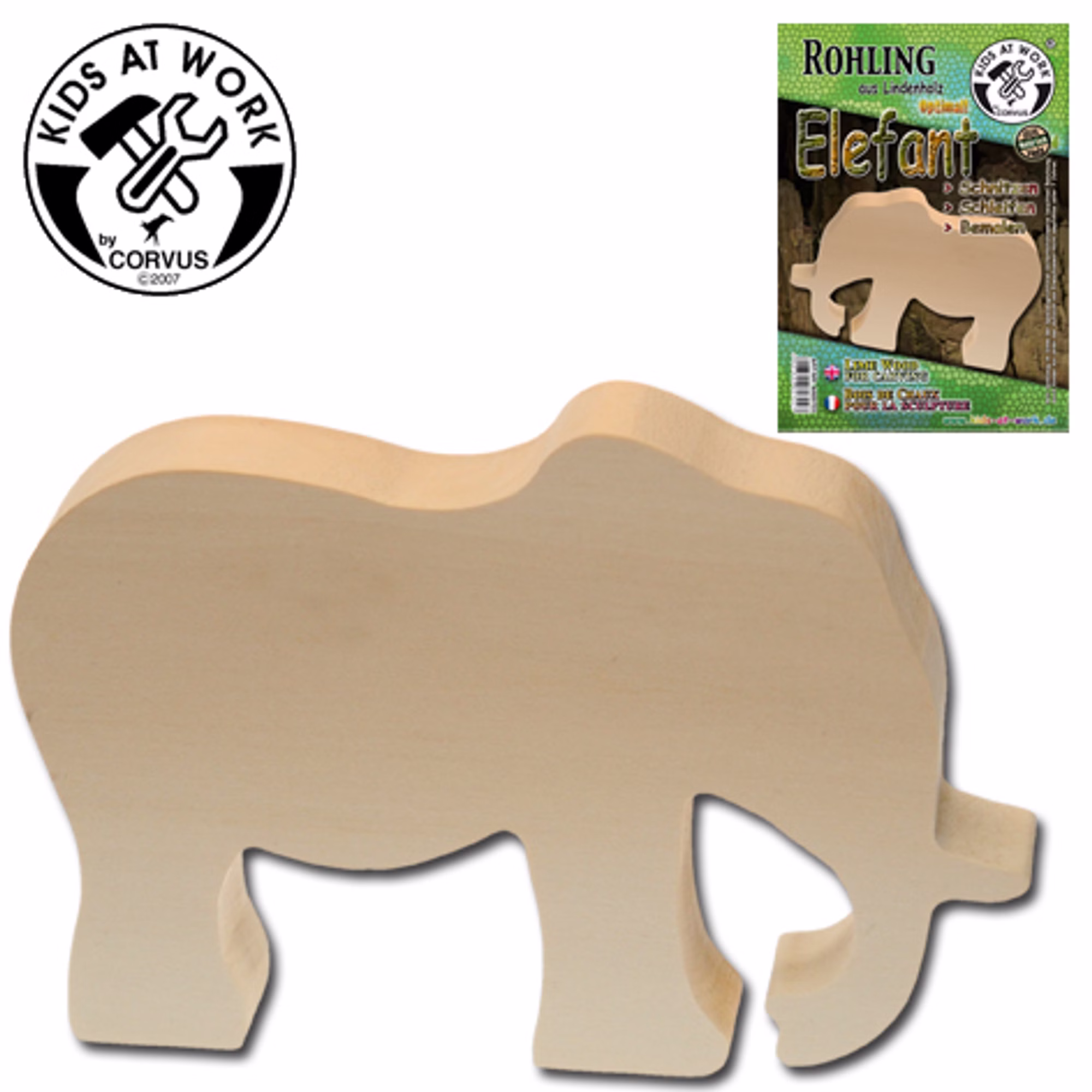 Dieser Schnitzholzrohling Elefant aus weichem Lindenholz ist ideal für kreative Bastel- und Schnitzprojekte.